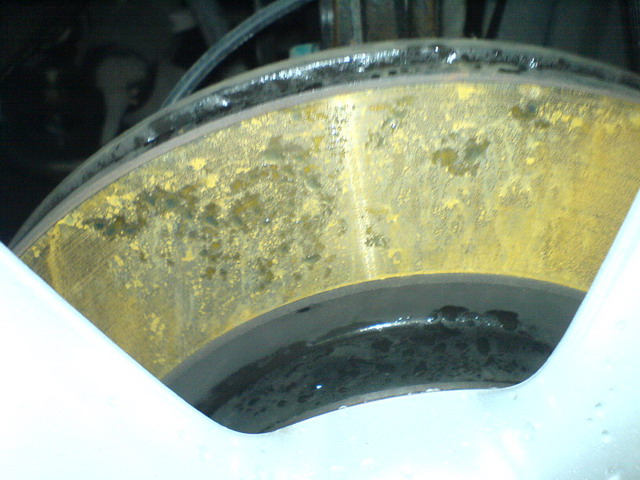 Заехал в пятницу на мойку, в момент въезда в бокс тормозные диски были как зеркало. Только по машине прошлись аппаратом высокого давления, они стали как на фото