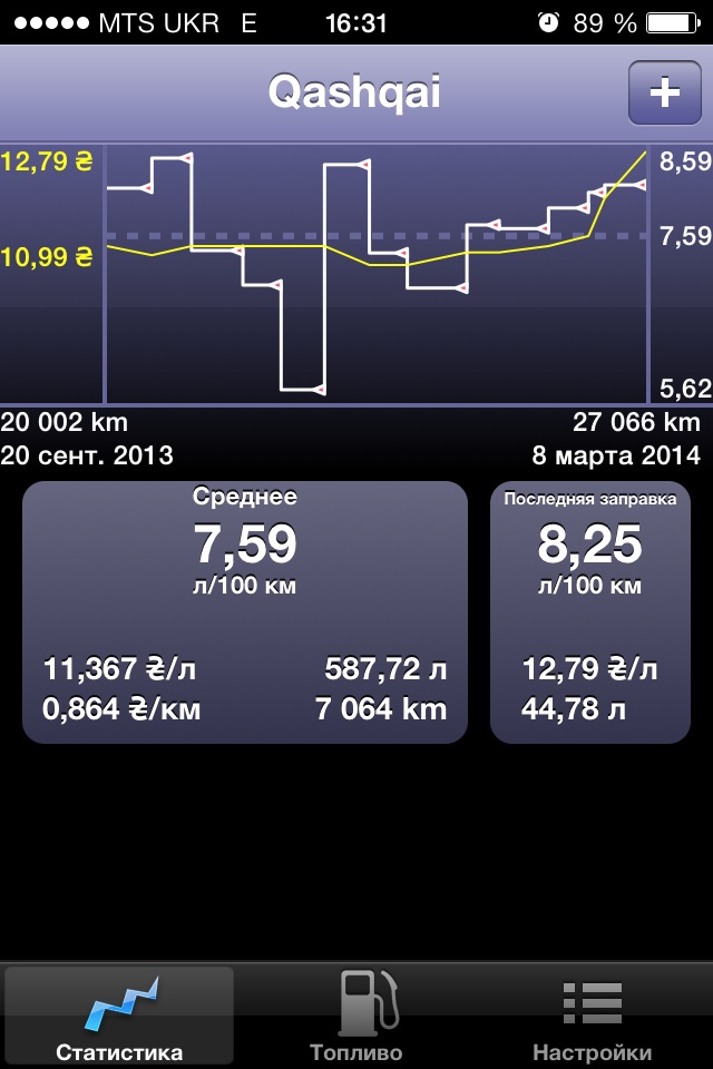 Вот мои последние заправки, практически езда только по центру в час пик и раз в неделю 50 км трассы возле Киева.