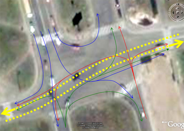 А теперь нарисовал я из-за чего и происходят постоянно неприятности на этом перекрёстке. ТАК
