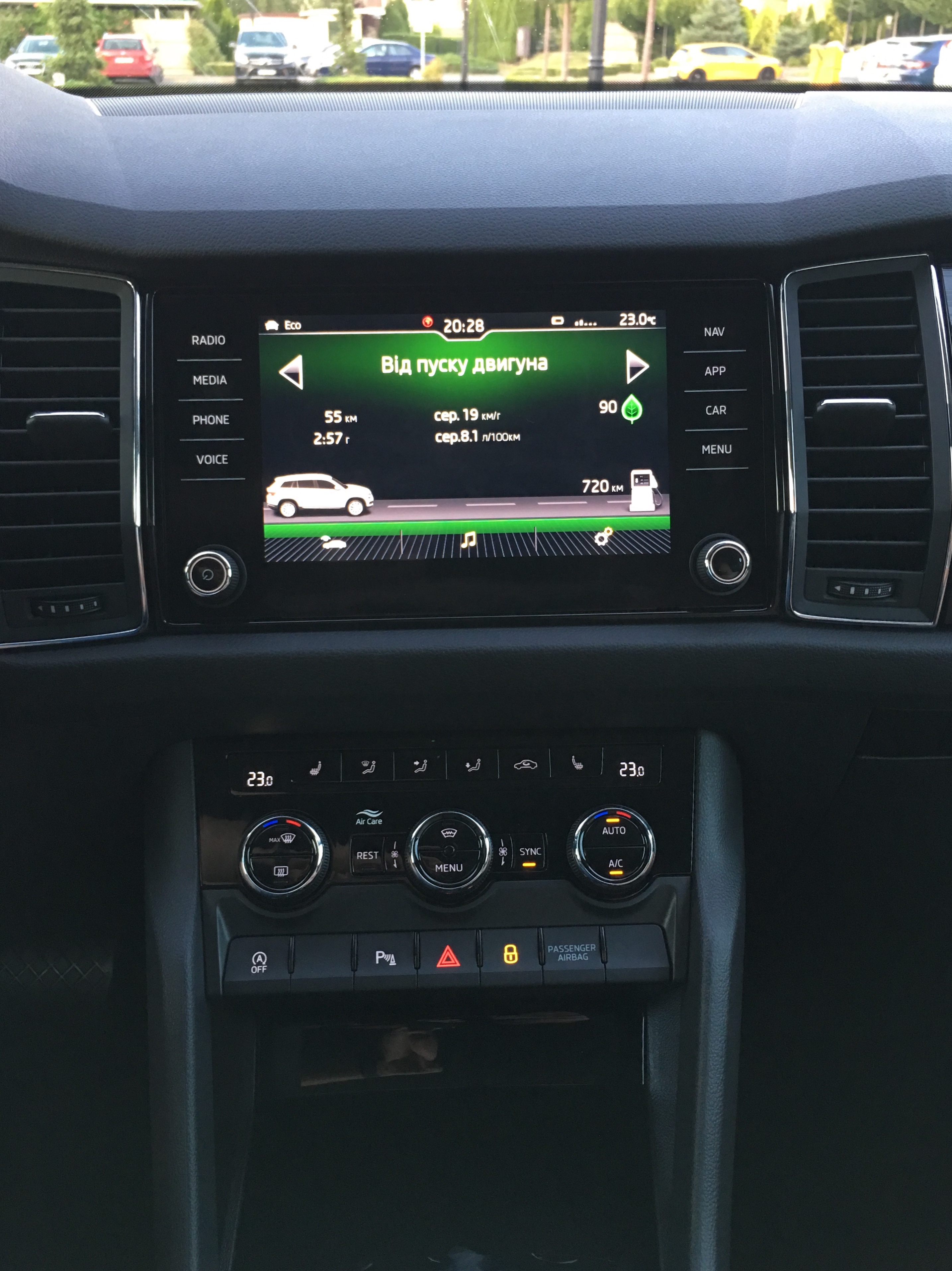Из няшек комплектации - топовый лэд свет снаружи покругу с кучей функций, адаптивный круиз до 160 км/ч, старт-стоп, парктроники спереди и сзади, подогрев передних сидений, фен салона для быстрого нагрева зимой, розетки (12 В и 230 В) и куча USB портов, Simply Clever примочки, полный бесключевой доступ, система шкода-коннект, эко-климат, диски 19 дюймов, докатка и даже украинский интерфейс.