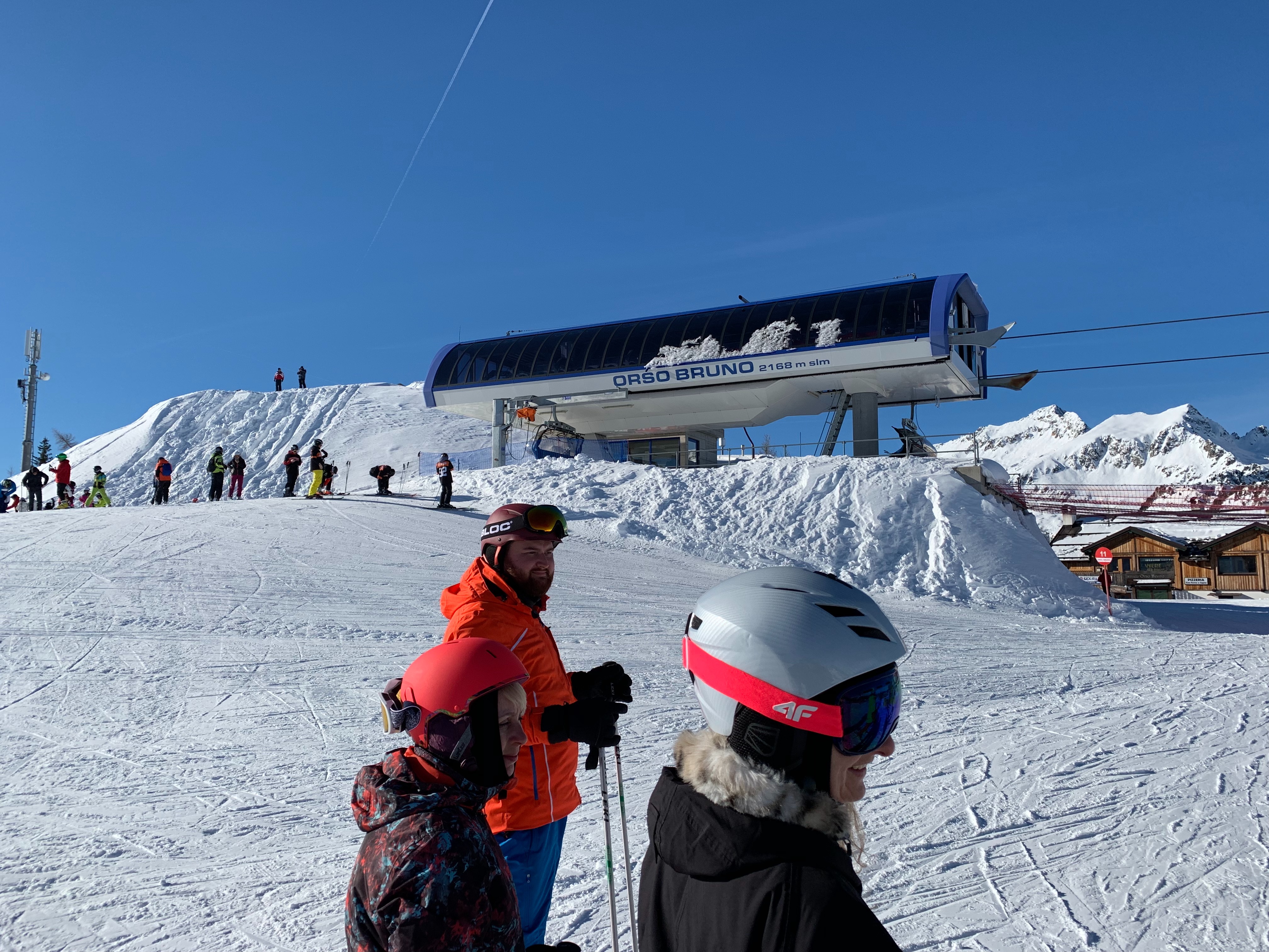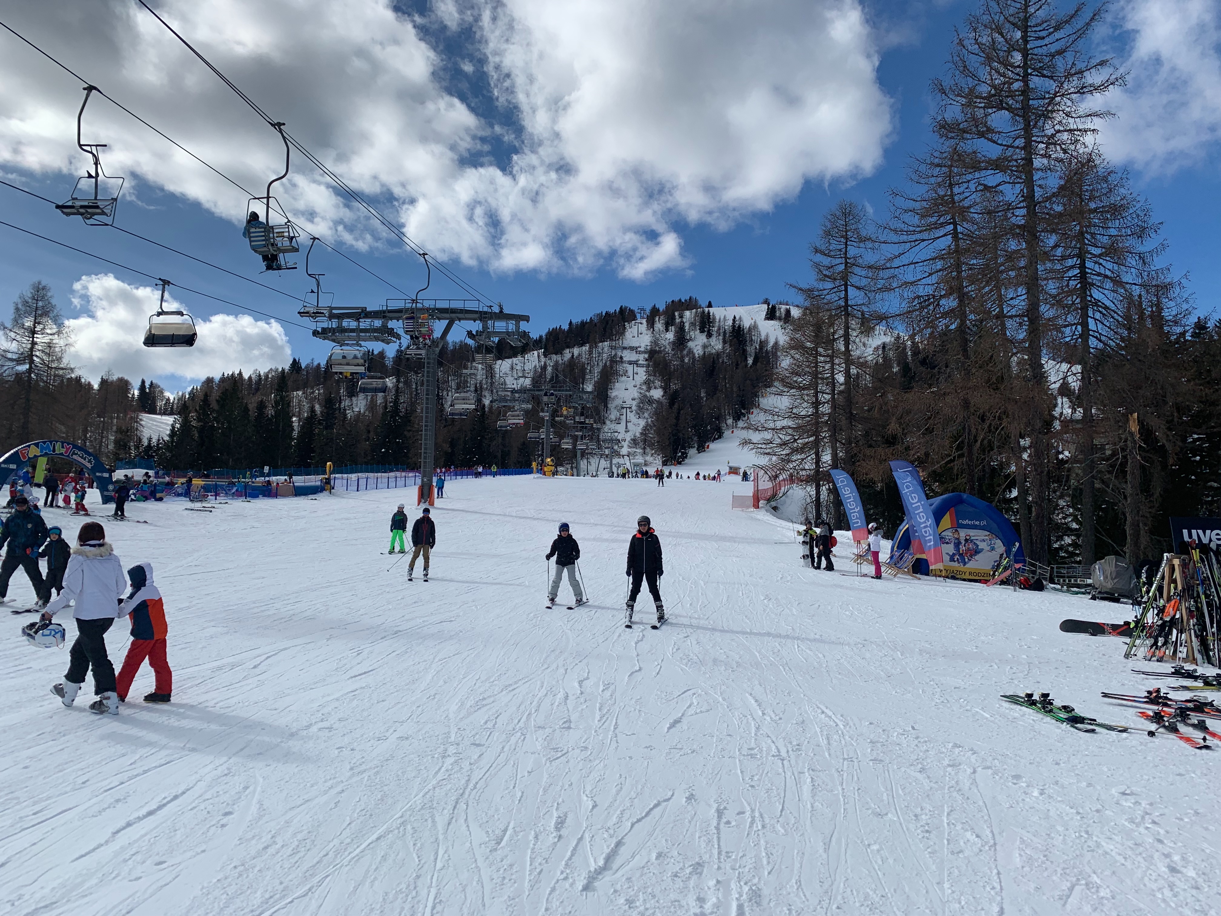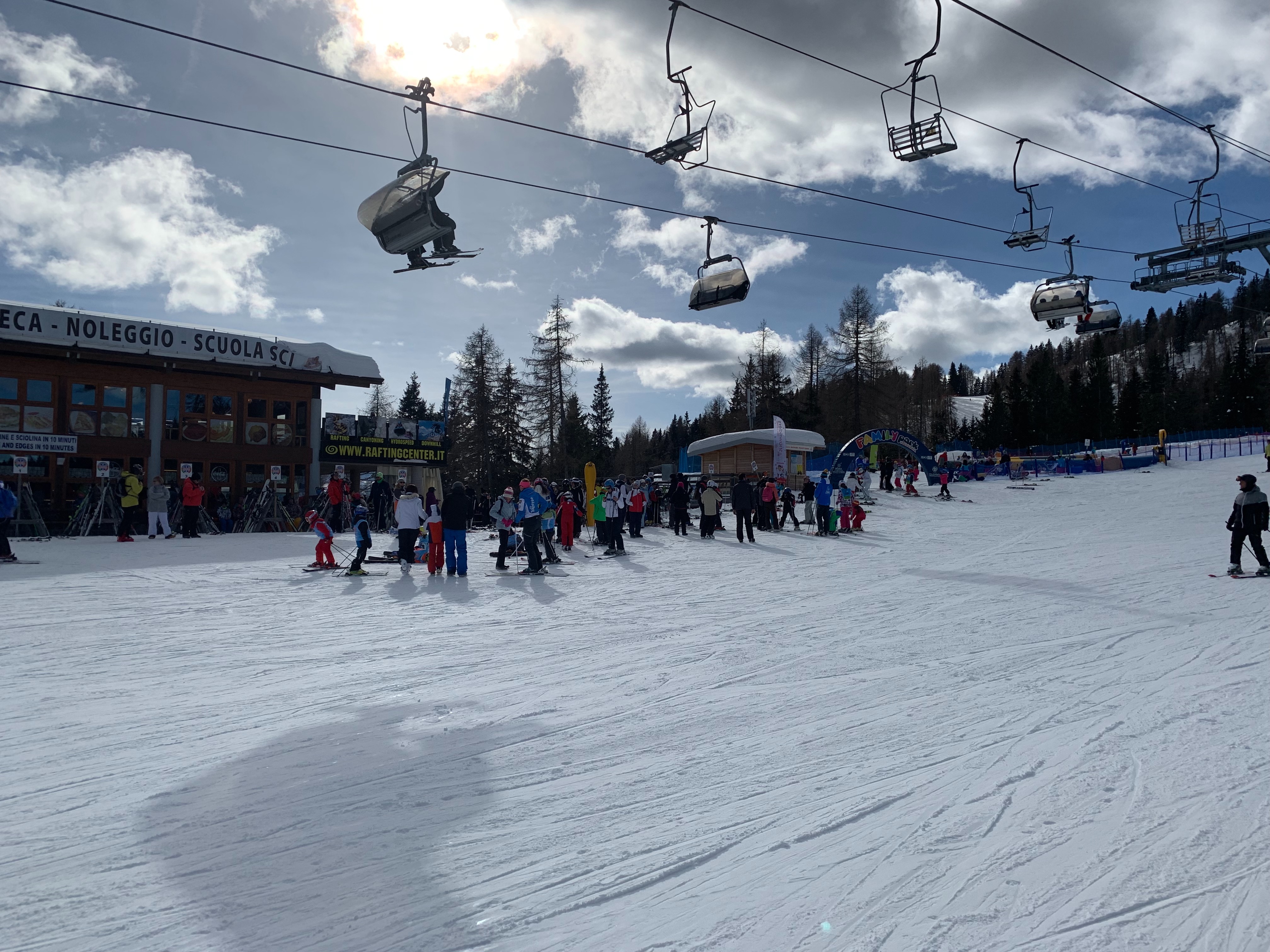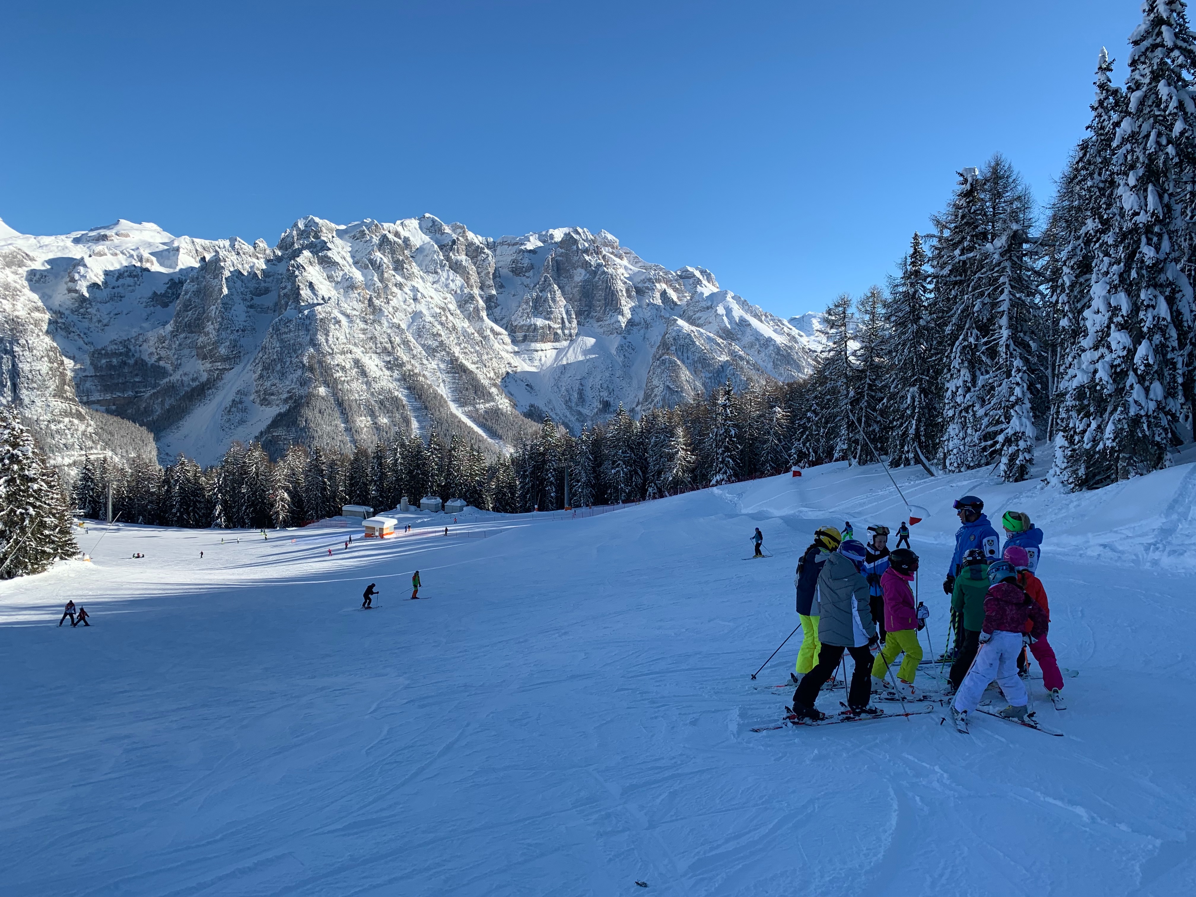 Пока Коди мирно сопит на парковке под отелем в деревушке Димаро (мы даже не знали, что будем жить именно в ней, что весьма позабавило старшего), мы третий день укатываемся в хлам. У младшего даже что-то типа высотной болезни сегодня приключилось, но завтра снова в бой! Когда одни друзья советовали начинать кататься сразу в хорошем месте, чтоб поехать и заболеть, я послушал других друзей, выбрав эконом-вариант в польской Бялке в период рождественских каникул прошлой зимой. В итоге, у меня за полтора дня катания по искусственному снегу под дождем - парочка падений и повреждение колена, которое потом 3 месяца лечил, испортив и велосезон 2018. Малой не научился, жена тоже, старший, правда, поехал, и на компанейском Ски-викенде в Щирке он уже штурмовал черные трассы. Я же пытался хоть что-то вспомнить из того, чему учил инструктор в Бялке и боясь за колено, особенно при вылетах на ледяные поля. Щирк - классный, 40-45 км трасс, новая инфраструктура, в которую влили мощно словаки пару лет назад, но на выходные туда лучше не лезть: народу море, пробки дикие... Короче, если бы не оказия в Щирк и хорошая компания коллег да успехи сына, я бы забросил идею открыть для себя зимний спорт. А ведь так мечталось, так хотелось... И вот таки рванули в Доломиты. С польским организатором, на семейный обоз, приуроченный к мазовецким школьным каникулам. Малой с польским инструктором в детской школе, старший - в группе для середнячков маньячит по трассам супергиганта и остальным черным местам со своим инструктором, который на год старше его, мы с Ирой в бегиннерах с парой полек и парнем-англичанином, который работает в Польше и пару дней назад впервые встал на лыжи. Тичер у нас итальянец с изумительным английским и просто гений педагогики. За три дня его стараниями мы уже гоняем на 40-45 км/ч и почти освоили повороты на параллельных лыжах. Сам курорт - это сказка. Мы взяли скипасс не на весь комплекс 150 км (Folgarida-Marilleva + Madonna Di Campiglio) трасс (их там под 70), а на одну его, ближнюю (первую) часть. 38 трасс, высота максимально 2150 м над уровнем моря, но главное - до отеля 4 минуты. Трассы широченные, при довольно большом количестве людей (больше 2-х минут все равно не стояли к подьемникам), они пустые. Подготовлены идеально. После прошедших накануне снегопадов имеем местами до 1,5 м покрова. Что бросается в глаза - обилие детских школ и мелюзги в них: польские, итальянские, румынские. У нас в обозе есть малята по 3 года! Приезжаем на гору к 9-00, успеваем до встречи с инструкторами разогреться и вспомнить вчерашние трассы. С 10-00 до 12-00 муштра, 12-00 - 13-00 ланч там же с детьми, которых нам привозят. Успеваем за 20-30 минут покушать и со старшим еще закрепить то, что учили до обеда, с 13-00 до 15-00 снова муштра. Вечером всякие развлекалова и анимации для детей и взрослых, в том числе и теория, правила поведения на горе, безопасность. В четверг будут типа соревнования внутренние, в пятницу награждения и призы для детей. В общем, заболели мы тут этим спортом окончательно. Поехали в прямом и переносном смысле. Старшему пообещал персональные буты купить на следующий год. Ну и правы были те друзья, которые советовали начинать сразу в хорошем месте. Хотя, продолжать будем в аналогичных.