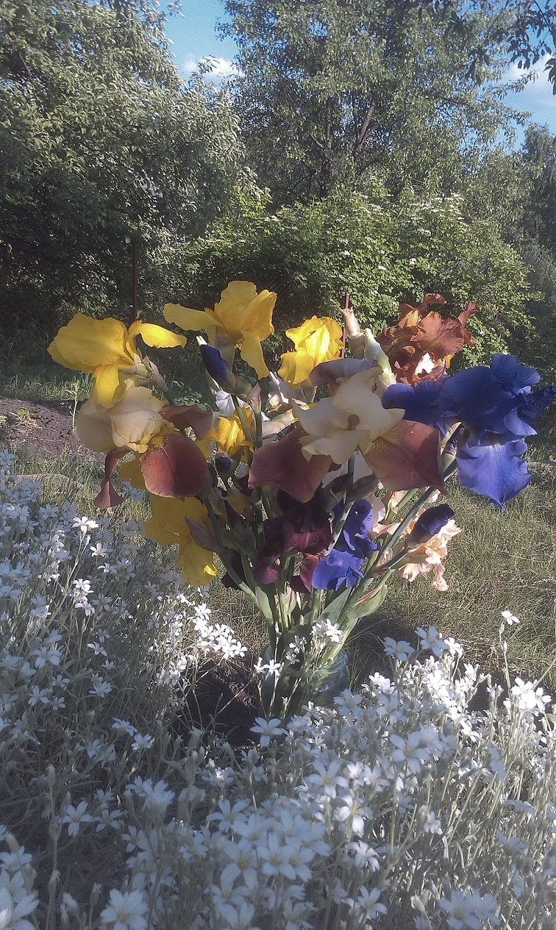 У нас на даче зацвели ирисы. Вот какие букеты получаются.