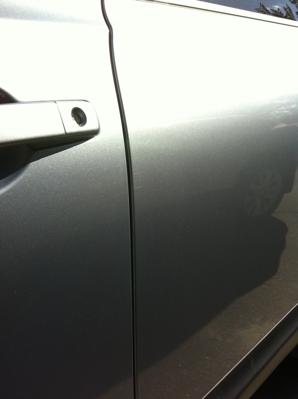Таки провернул я операцию сегодня. Пока малой был в бассейне, помыл машинку и поехали мы на смарт солюшнс, благо дело с ЦСКА через Подол удобно. Вмятинку убрали так, что и следа не осталось, правда повозится пришлось из-за места неудобного и вибры, наклеенной поверх метала изнутри двери. После полировки скола в лаке на этом месте почти ничего заметить нельзя, еле видный скол остался. Взяли 200 грн, работа заняла около 30 минут. По моей просьбе полирнули еще одно место на двери ( ссадина от грая соседского зеркала, точнее от грязи, которая была на зеркале) и на ляде под стеклом паутину царапин оставленную сползавшим грязным льдом зимой. За полировку отдал 150 грн. Результатом доволен!