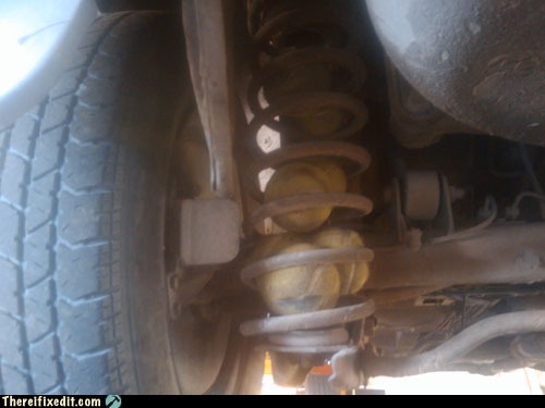 Приобретаете конические разрезные втулки амортизатора от Газели 4 штуки по 5р за шт. (Особо одаренные приобретают два болта с гайками).