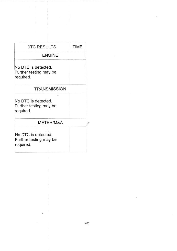 - Результаты инициальной компьютерной диагностики узлов и систем Кеши.