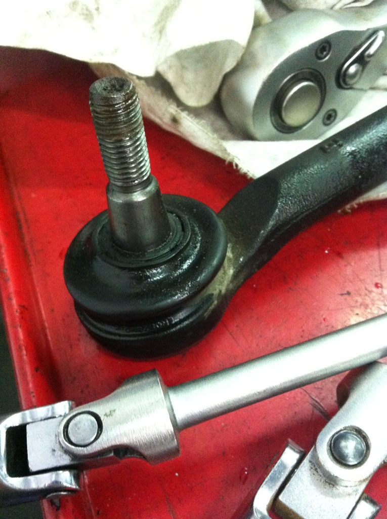 Ровно в 10-30 Кешика забрали. А ещё минут через 30 я запаниковал, не забыли ли меня случайно или того хуже нарочно?.. Спишем на реальный перегруз СТО сегодня, но менеджер был то ли очень забеганный, то ли не очень опытный... В итоге извинился и сообщил, что сейчас проведёт меня в цех, но сперва закажет запчасть по гарантии, если она есть в наличии для замены. Это уже было сюрпризом для меня - я ведь ни на что не жаловался пока, да и был полностью уверен, что машинку только-только помыли, а тут уже и диагностику провели. В общем, попал я в цех минут через 40 после начала работ и обнаружил, что диагностика проведена и в её результате выявлен умирающий левый наконечник, требующий замены по гарантии. Вот он-то и не давал мне покоя, предательски постукивая ещё с августа в левом повороте. Я тогда писал на форуме и многоуважаемые соконфетники сошлись во мнении, что наиболее вероятна проблема со стойками стабилизаторов. Ан нет! АА зачет за качественную диагностику, проведённую даже без моего участия.