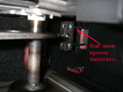 Так вот, что оказывается у меня произошло: там на конце тросика есть ещё и крепление для двух других. Так вот одно из них у меня и вылетело из пазиков. На иллюстрации видно.