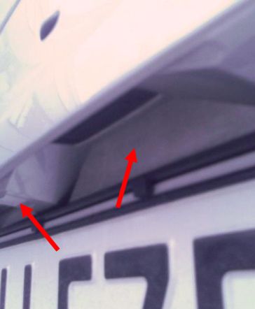 Как вариант, рассматриваю возможность врезания камеры в накладку задней двери (не в саму дверь)... потенциальные места показаны стрелками.