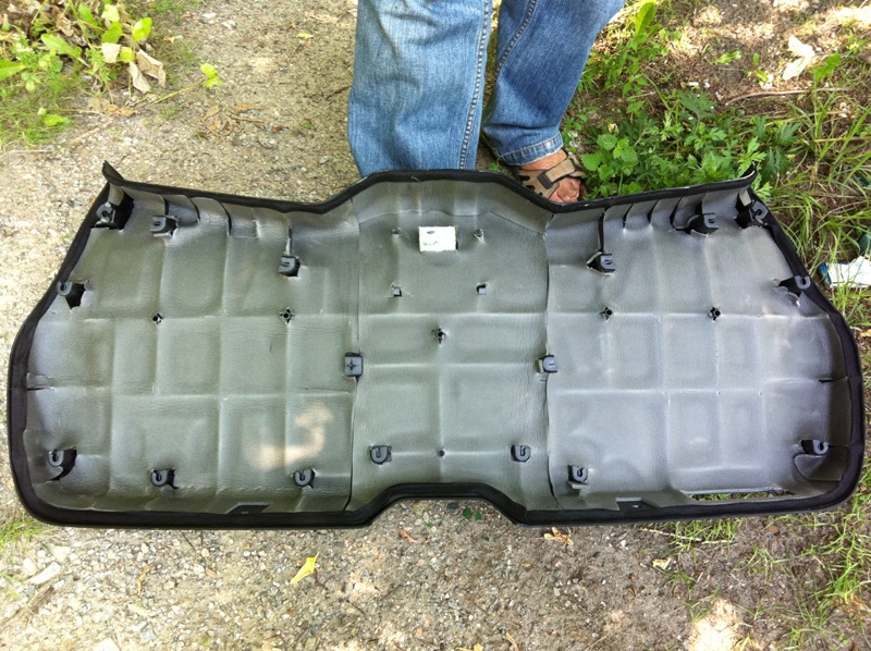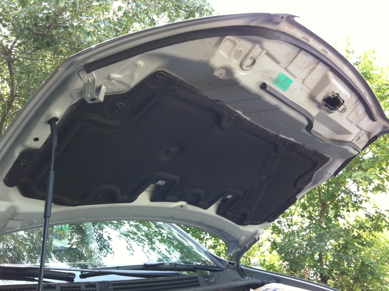 Параллельно проклеили вибропластом М1 капот. Как видно на фото, капот рестайла имеет несколько иную конфигурацию, да и так называемая штатная шумка скорее служит термобуфером. Задача была снизить интенсивность вибрации при движении на скорости по трассе. Это важно для меня, так как часто на крыше вожу ещё и велики... Тут пришлось делать лекала из газетки, что оказалось очень просто и быстро.