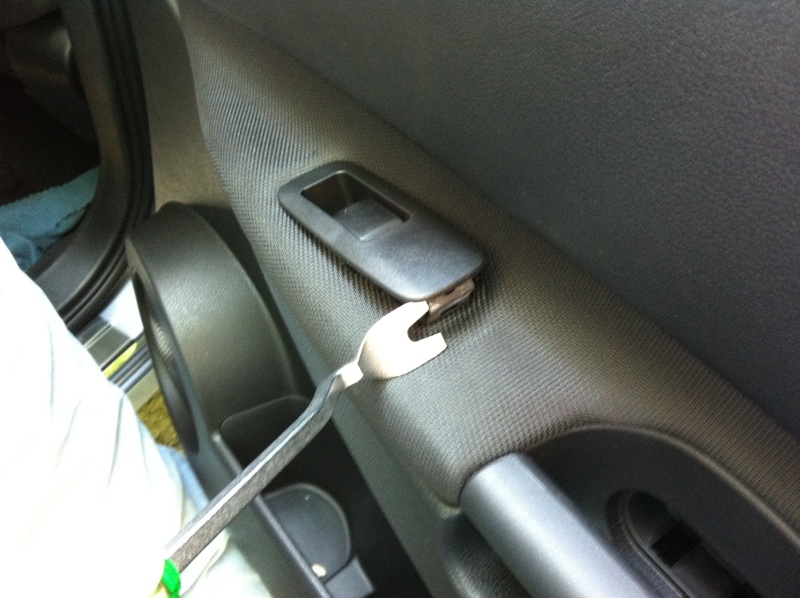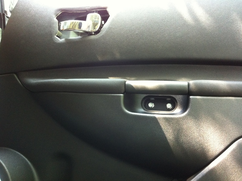 Ручка двери на моём Кеше расположена с торца двери справа и прикручена болтиком ко внутреннему листу двери. Кстати, край отверстия вчера по контуру проклеил антискрипной лентой – теперь ручка сидит в своём гнезде плотно и абсолютно никак не выказывает побочными звуками своего присутствия.