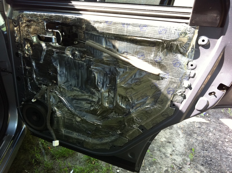 Наружное и внутреннее полотно практически полностью были закрыты Вибропластом М1, а на карту для утяжеления и гашения низкочастотных шумов поклеили оставшиеся обрезки М1.