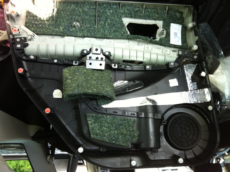 Вместо штатной пароди и на шумоизоляции в виде войлока дверная карта была полностью покрыта Спленом 4 мм и антискрипом по периметру карты и окна для ручки открывания двери. Далее – собрали в обратной последовательности. Лишних деталей не осталось и на сей раз, что радует.