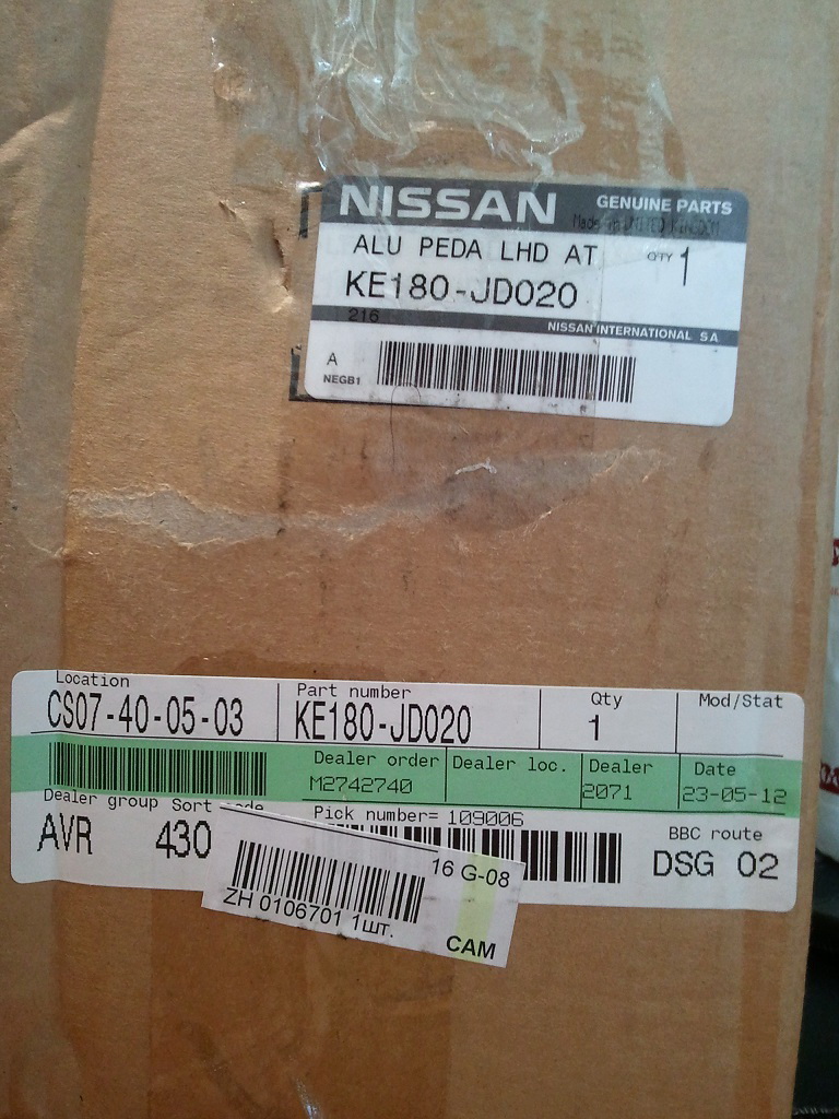 - Еще когда был Note все хотел поставить алюминиевые накладки на педали как в комплектации Tekna, но код так и не нашел... Сменил Note на Кашкай, но мечта осталась. В комплектациях таких накладок сперва не было, поэтому присматривал что-то типа Sparco. Смущало то, что они крепились винтами прямо в педаль, чего ОД явно бы не одобрил. И вот появилась комплектация SV он же Лаундж с накладками, но даже пробив по VIN машину с накладками никакой разницы по сравнению с SE+ прога у ОД не показала. Но ищущий да обрящет - когда искал аксессуары для Кашкая на каком-то сайте просто в табличке наткнулся на строку "Алюминиевые накладки" и код KE180-JD020 Пробил в Exist - точно есть такие: "Alu peda lhd at". Без фотки и перевода... вроде "алюминиевые накладки для левого руля варик". Ценник вдвое выше, чем Sparco не смутил, ибо БРЕНД. И вот к ТО-3 решился затарить через SoAuto, кому респект и уважуха - как и обещали через неделю все расходники и накладки (из Москвы) уже прибыли в багажнике к дому. Жена (пилот) говорит можешь домой забрать - там два пакета - в один расходники положили для ТО, а в другом коробка с твоими ПЕДАЛЯМИ. Я как то этому значения не придал, сходил. Сразу во второй пакет - коробка размером с две канистры с маслом. Ну, думаю, просто нашли коробку от расходников чтобы накладки не потерялись. Открываю - в уголочке блестит накладка на педаль тормоза сразу с резинкой... а справа во всю коробку... весь узел педали газа в сборе А просто накладку как для тормоза нельзя было? Несъемная что-ли? Смотрю как крепится - просто лапки загнуты - даже проще чем натягивать на тормоз. Зачем тогда все остальное? Смотрю - в коробке какая то бумажка - оп-па, а это мануал формата А4 аж на 4 листах. Нахожу русский и читаю СПОРТИВНАЯ ПЕДАЛЬ Интересно, выходит если бы просто люминий на нашу педаль надеть, то это просто педаль с накладкой, а это - спортивная. Видимо дело не только в накладке, начинаю пристально изучать "лягушку" с разъемом - CTS Made in Scotland, ну хоть не Китай Начал нажимать на педаль... и вот тут дошло может ход меньше и демпфера программного нет? Типа "прямой" привод дросселя А вдруг! Топаю к жене на кухню: У тебя теперь педаль как у Монтойи - чуть тронула и понеслась. Со светофора будешь пулять как на "девятке" раньше После ТО сначала на нейтрали погазуй, ход почувствуй, как газ реально набирает, а то даванешь по привычке... потом будут с газона стаскивать