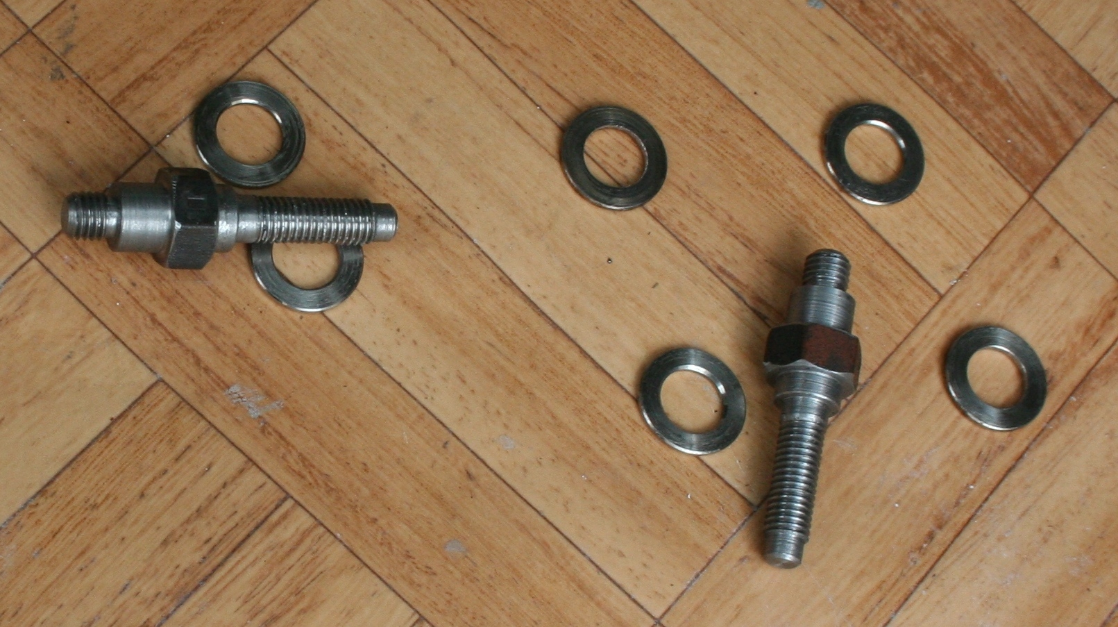 Они же со штатными колпачками и стопорными шайбами (чтобы проставки не выпадали).
