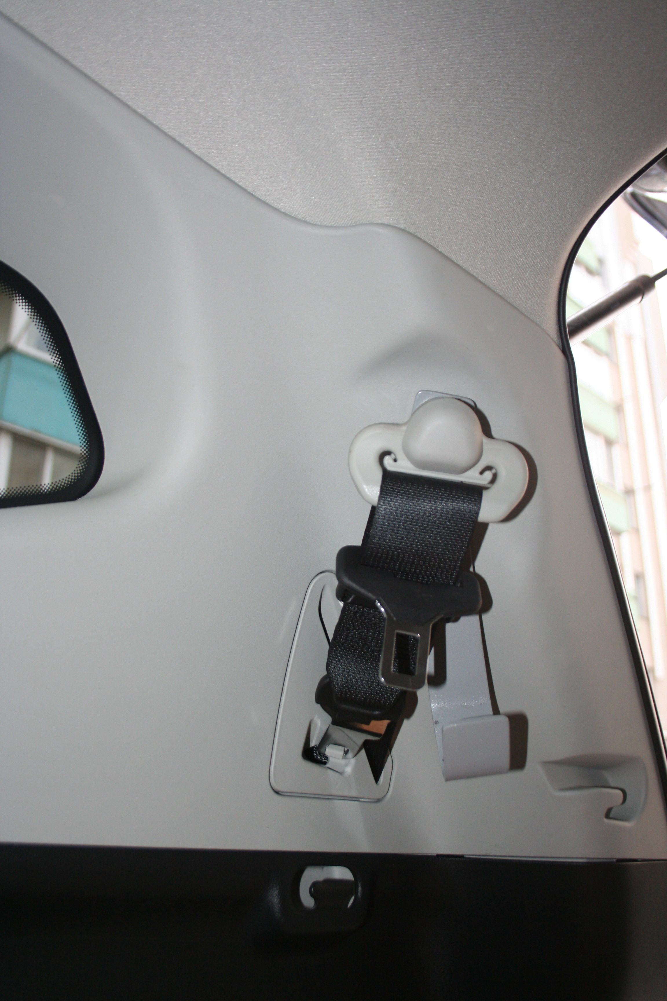 Вид ремней безопасности третьего ряда со снятыми болтами.