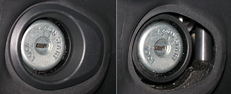 В общем, что-то надо было делать. Естественно разбирать рулевую колонку никто не собирался и особенно напрягаться по этому случаю тоже. Оказалось, что вокруг замка есть посадочное место под чего-то, похоже, даже с резьбой.