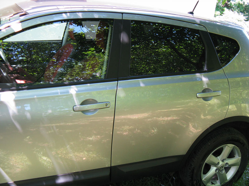 Шторки - в целом вещь хорошая, но очень хлопотная - ставить, снимать. Присоска иногда отклеивается, от нее остаются следы на стекле и т.д. Эти ньюансы и сыграли решающую роль в вопросе тонировки.