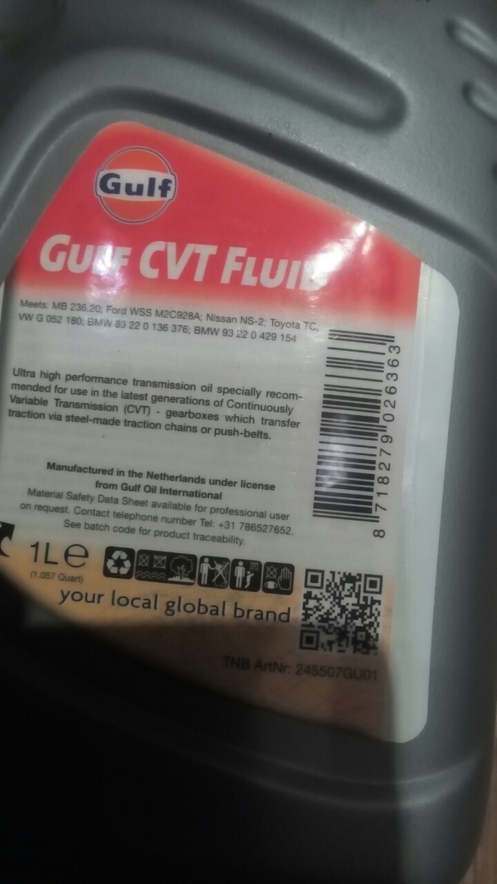 Мой дружбанчик пару лет тому работал на одном японском официальном сервисе, говорит туда (и в движок и в коробки) полную бодягу заливают. Вообщем залил мне этого масла Gulf CVT Fluid. За сегодня уже проехал 60км, пока изменения не прочувствовал ) Допуск есть, мол контора не паленая масло брали оригинальное, будут проблемы будем судиться ))).