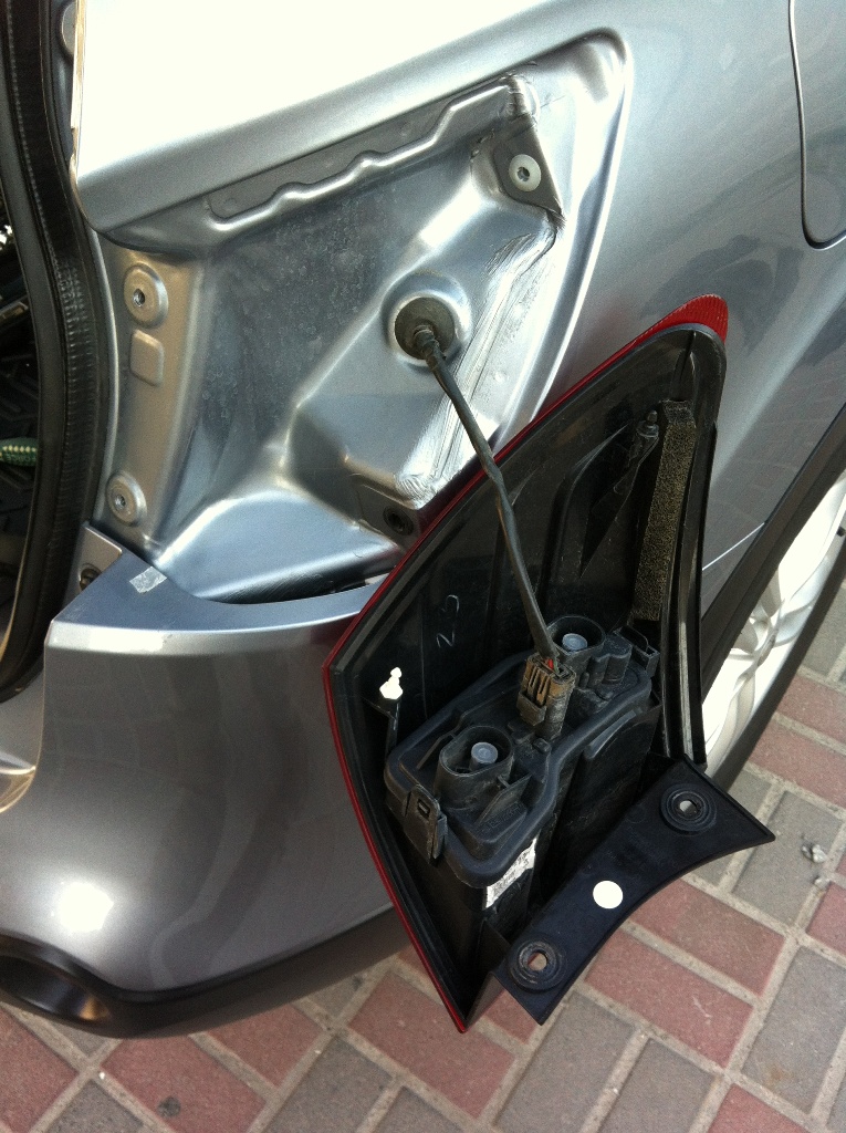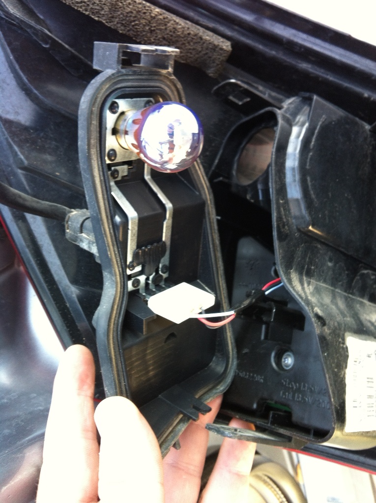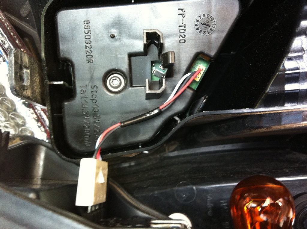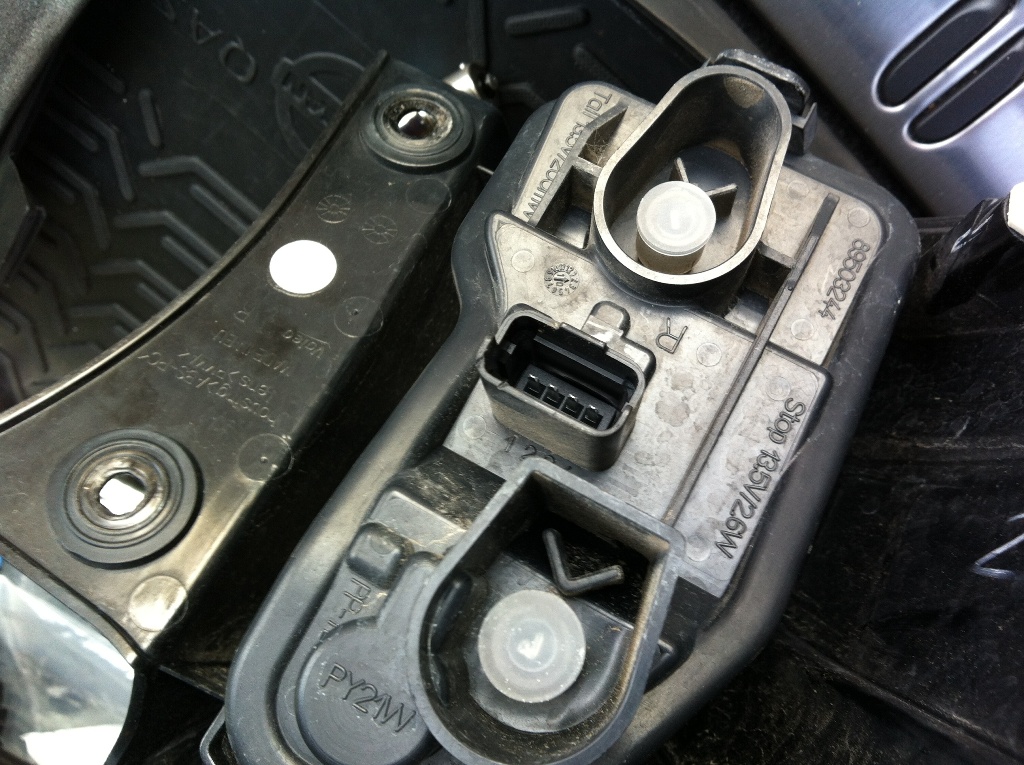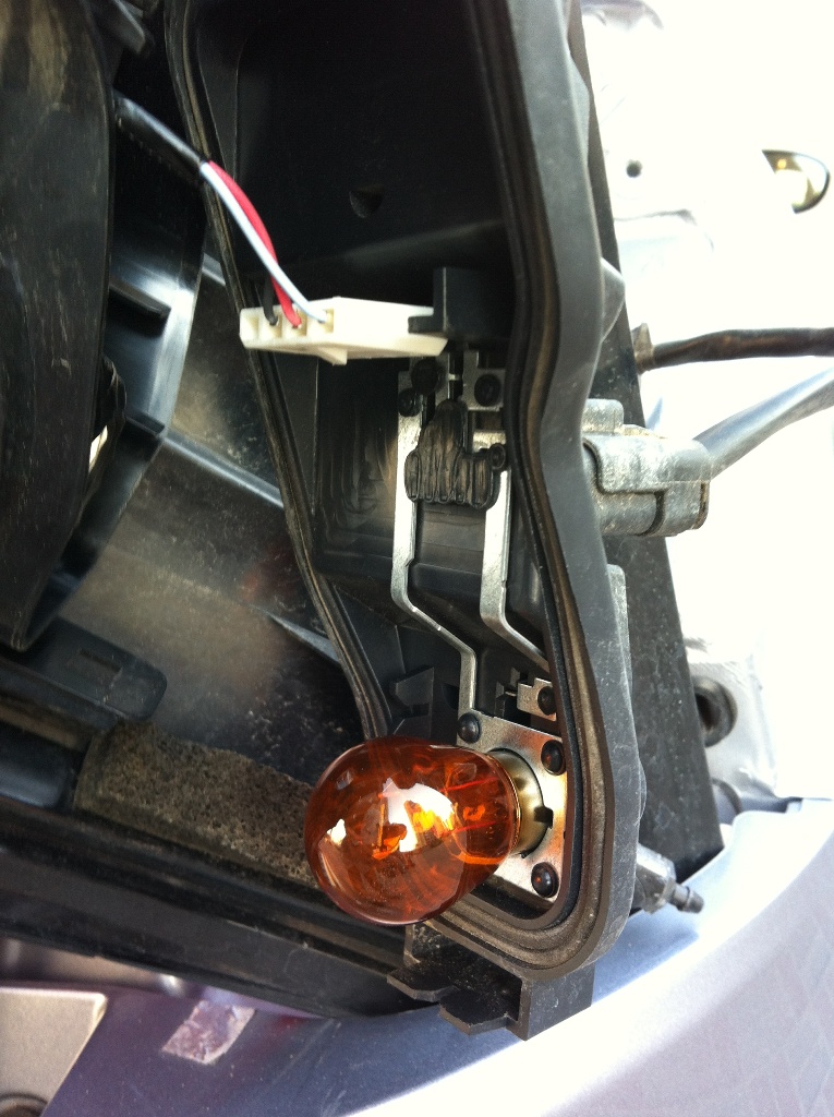 - Под заглушкой - лампа поворотника и клемма диодного габарито-стопа. Поворотник очень загорел - это правый.