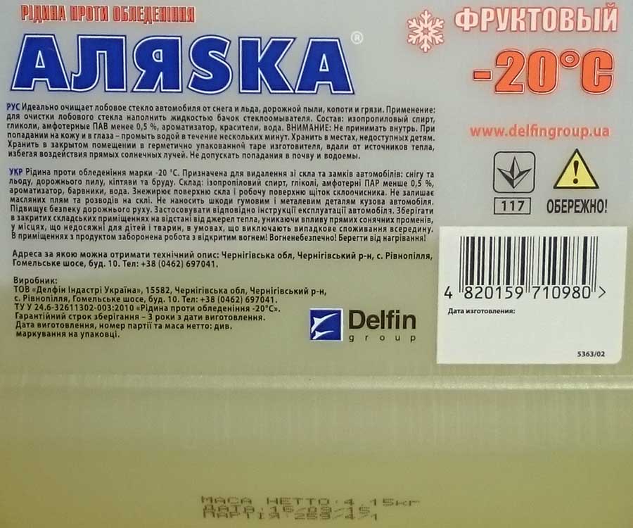 Стало интересно, проверил в морозилке бюджетную омываюку made in Ukraine: Аляsка -20, цена 100грн за 5л. Мои garmin fenix показали температуру в морозилке -17, омывайка при этой температуре стала вроде как чуть чуть гуще, примерно как водка из морозилки