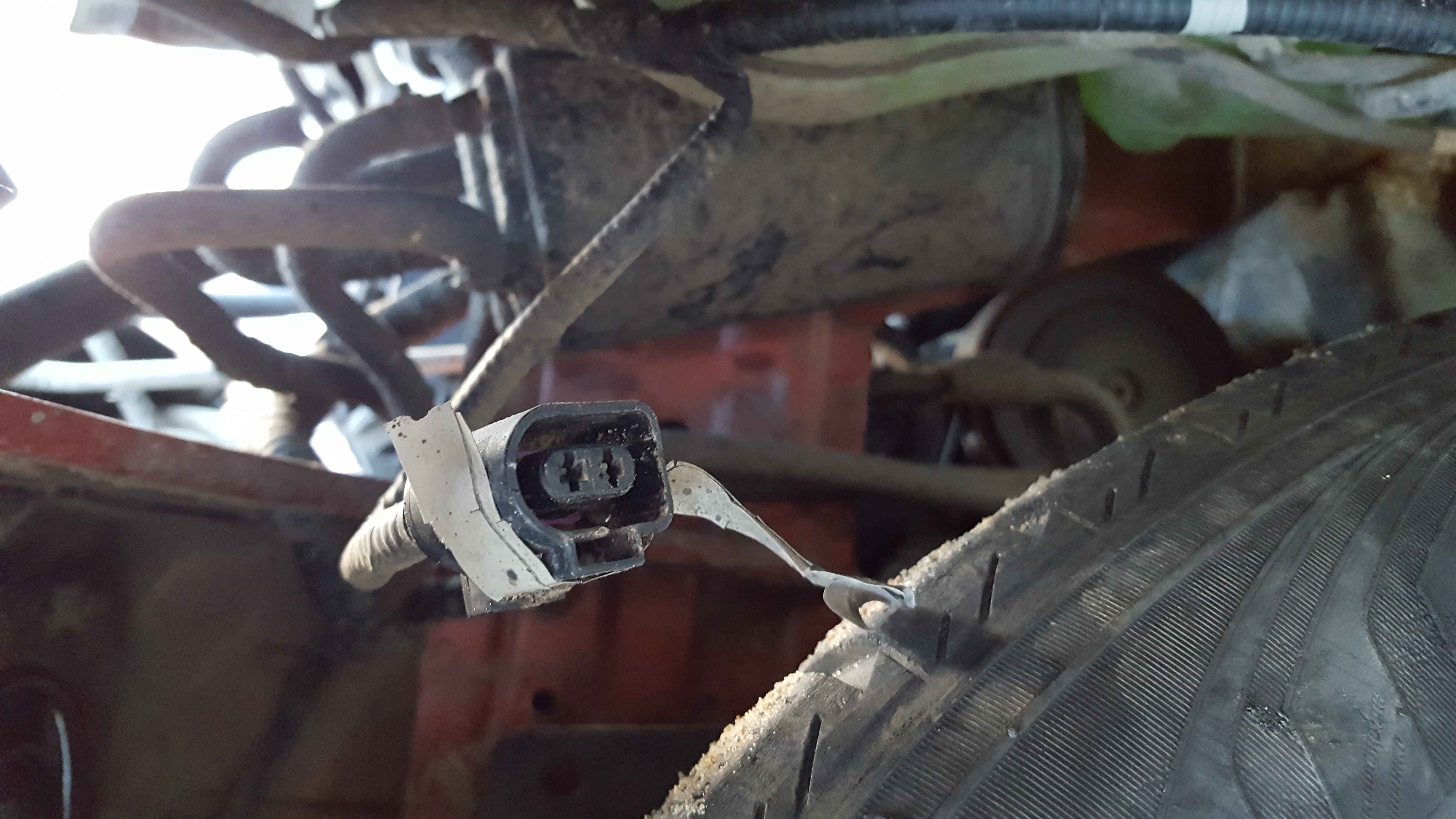 Вчера сорвал пластиковую защиту с переднего правого колеса и обнаружил висящий в воздухе разъём (см. Фото). Откуда он?