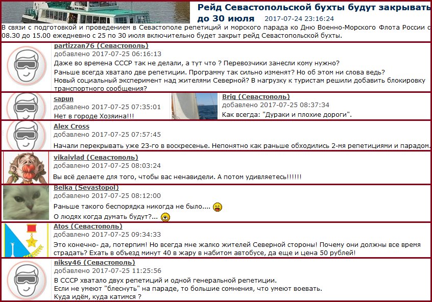 Сэнсэй писал(а):Причина провала очередного турсезона раскрыта:18 ИЮЛЯ 2017, ВТОРНИК, 12:51 В Крыму заявили, что Украина устроила "туристическую блокаду" полуостровуВ аннексированном Россией Крыму считают, что украинские власти пытаются помешать поездкам украинских туристов на крымские курорты. Об этом сообщает РИА Новости со ссылкой на главу регионального межнационального комитета Заура Смирнова