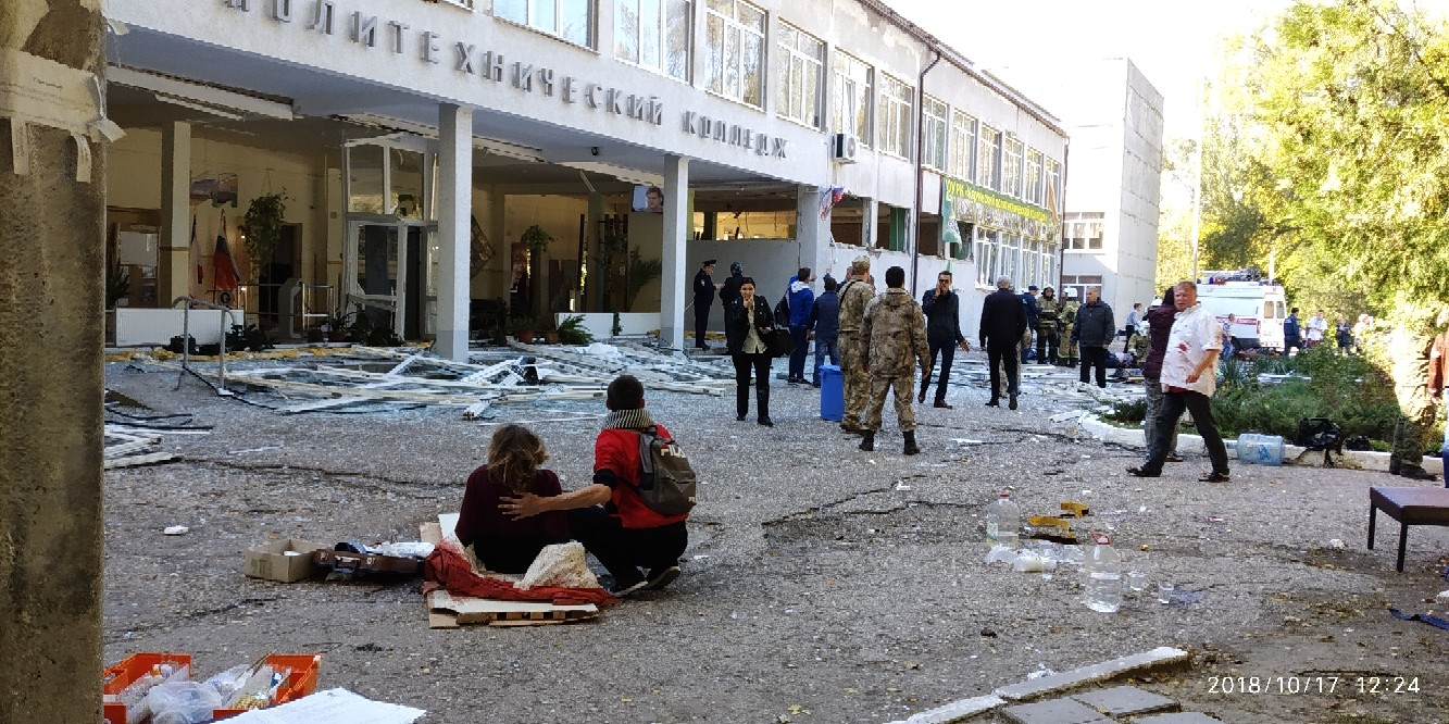 сделана в 12:24. При том, что по "официальной" хронологии: 11:40 В колледже большая перемена между второй и третьей парой. Вместе с толпой учеников в здание заходит студент 4-го курса Владислав Росляков. С собой у него спрятанные до поры ружье и самодельная бомба (или бомбы), а также целых 350 патронов и несколько десятков (как любит Вадим Сенсей ) "пеКард". 11:43 В коридоре второго этажа Владислав Росляков достает оружие и начинает стрелять во всех, кого видит. 11:44 Пепепуганные ученики колледжа выбегают на улицу, многие выпрыгивают прямо из окна. Нападающий продолжает расстрел. 11:45 Владислав Росляков спускается на первый этаж, в столовую и взрывает бомбу. И идет назад. 11:47 Владислав Росляков возвращается на второй этаж, где кончает жизнь самоубиением. 11:50 К колледжу подьезжают машины экстренных служб, в том числе полиции. Пострадавших от стрельбы и взрыва начинают выносить из здания колледжа. 12:24 Всех пострадавших от стрельбы и взрывов уже эвакуировали и вывезли, всем оказали необходимую медицинскую помощь. Кроме одной девушки, медицинскую и моральную помощь ей оказывает студент колледжа, который засветился где только можно, и тут успел, и там успел, и с детьми побегал, и дал 52 интервью, и самоотвержено помогал всем кому только можно, не побежал домой, как все нормальные дети, его не забрали родители, не приехали к нему или за ним в колледж. При этом его всюду пускали (как и второго "помошника"), даже за оцепление, которое в первую очередь должны были обеспечить и обеспечили, судя по тому что говорили люди. Ну и.. Все остальные сотрудники экстренных, специальных и не специальных служб выполнив за 33 минуты все необходимые процедуры по оказанию помощи и спасению пострадавших, эвакуации, а также расчистке места (тропинка возле перил, где нет стекла), убиранию всех следов побоища (нет нигде кров и т.д.), они все это сделали, и теперь с чистой совестью ходят, разговаривают, прохлаждаются. Уже некому помогать, некого выносить, некого эвакуировать. Уже все сделали! И проверили весь колледж. Можно стоять толпой, разговаривать между собой и по телефону, обсуждать.. И это все при том, что никто не должен был знать, что произошло?, есть ли опасность повторных взрывов? есть ли нападающие? сколько их? если они есть, все ли нападающие нейтрализованы? и многое-многое другое???!!! Вот это хронометраж! Вот это проФФессионализм!!! Мать их!!!