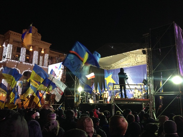 Во вторник уже сводил. Там же он позвонил своему севастопольскому другу и на вопрос "Что ты делаешь ТАМ?!" минут 40 описывал все, что видит, пока мы бродили по Грушевского, Институтской, Банковой, Майдану...