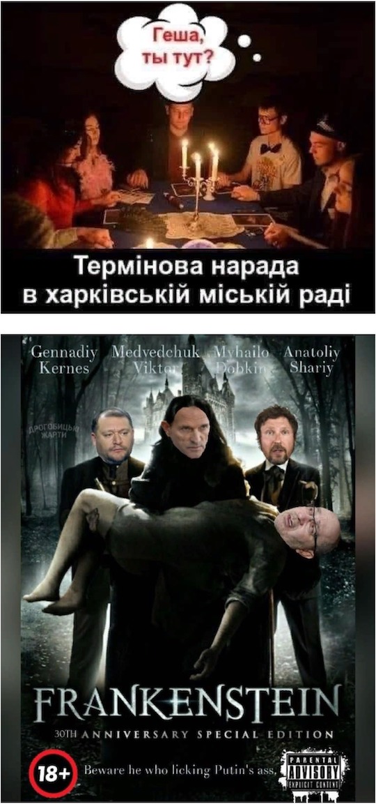 Политическии фотожабы в своем Facebook публикует российский художник Игорь Поночевный, известный широкой общественности под псевдонимом "Алеша Ступин".