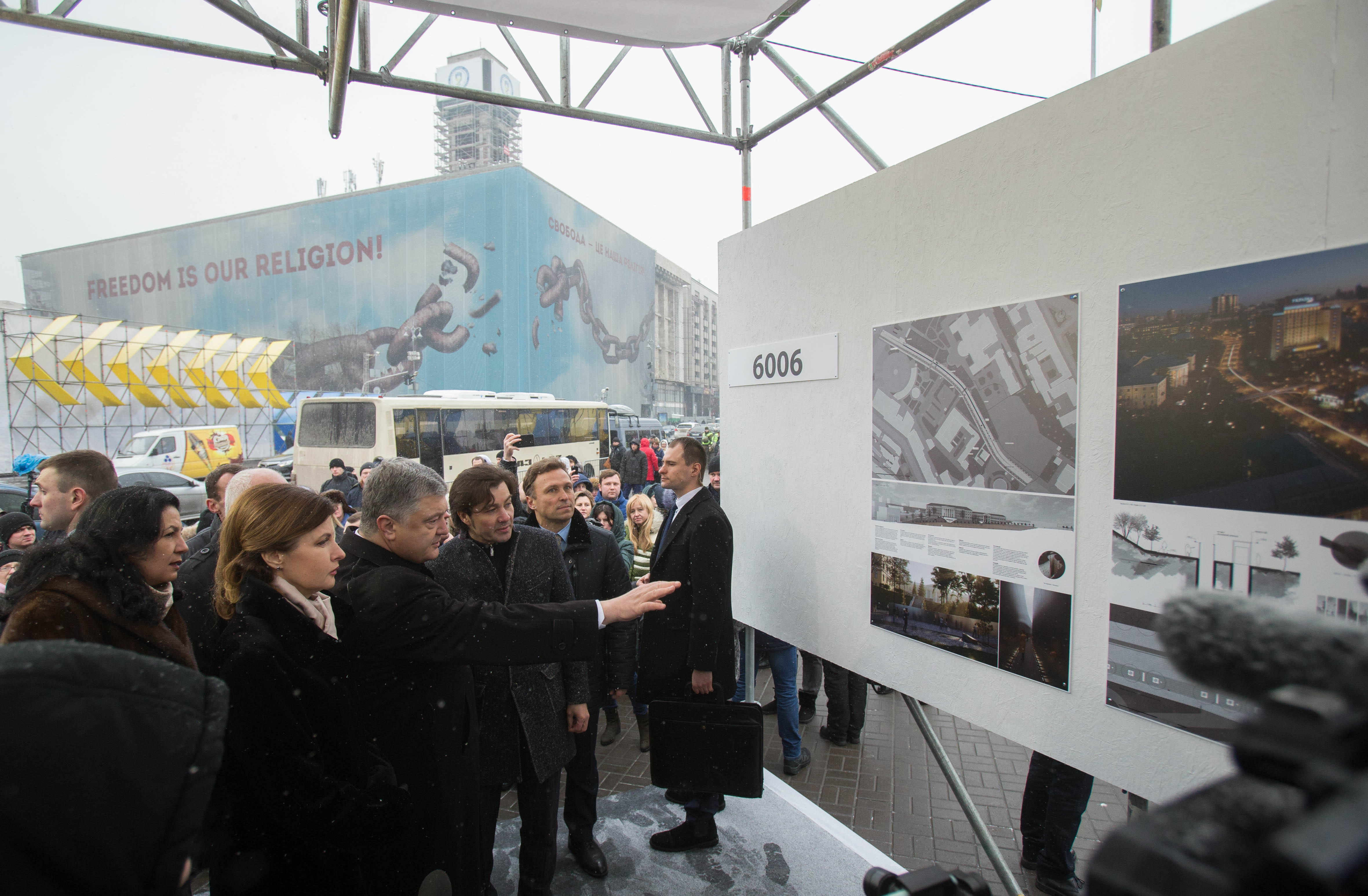 Президент Петро Порошенко разом із дружиною Мариною Порошенко відвідав презентацію проектів Меморіалу Героїв Небесної Сотні та Музею Революції Гідності.