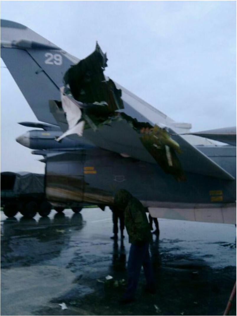 Военный корреспондент Роман Сапоньков показал фотографии бомбардировщика Су-24М с российской авиабазы Хмеймим в Сирии, поврежденного в результате обстрела. Снимки он выложил в четверг, 4 января, на своей странице «ВКонтакте». На них обратил внимание Telegram-канал Directorate 4, который занимается обзором деятельности исламистов.