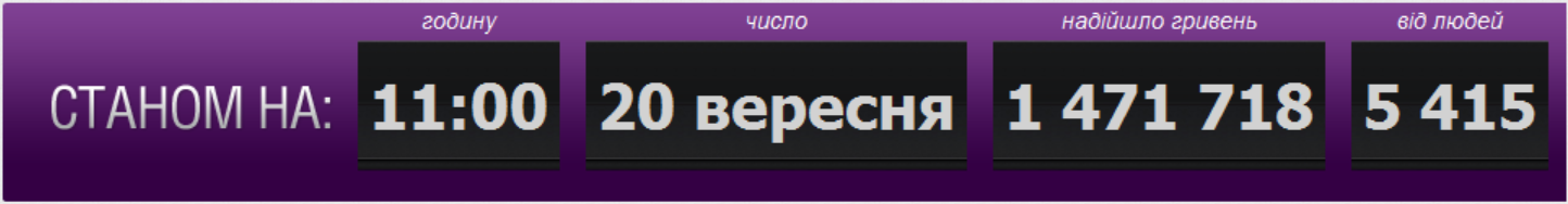 ЗІ: станом на 18 годину 18.09 - 1 045 085 грн. зібрано