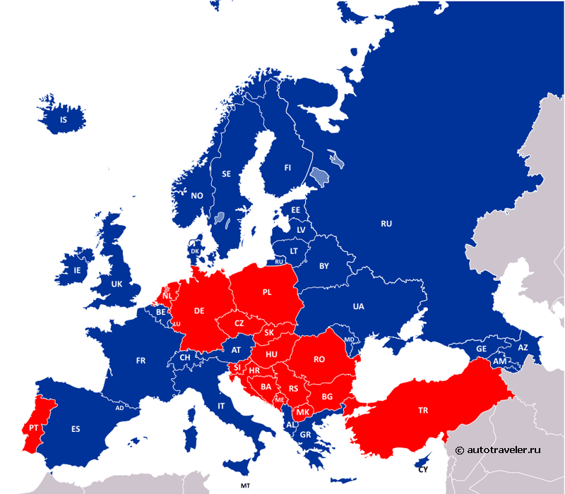 На второй, красным отмечены страны, где запрещена шипованная резина.