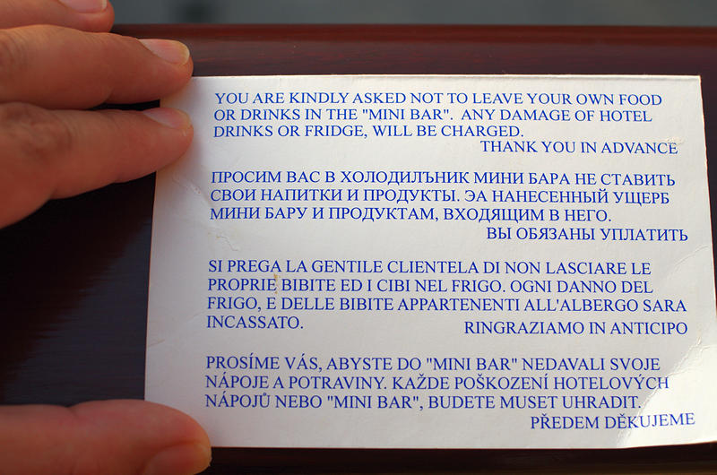 "За нанесенный ущер минибару и продуктам входящим в него" - это от души!