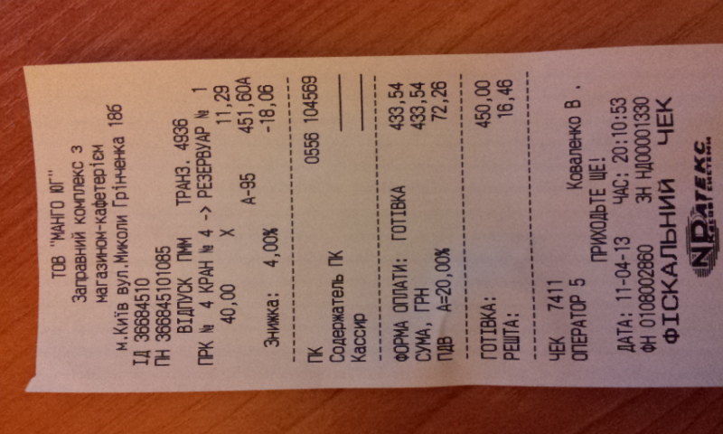 В чеке никакой скидки типа "минус столько-то" не было, сумма была как раз что-то 605 с маленьким гривен. Почему не скинули 4%? :smile: :sad: