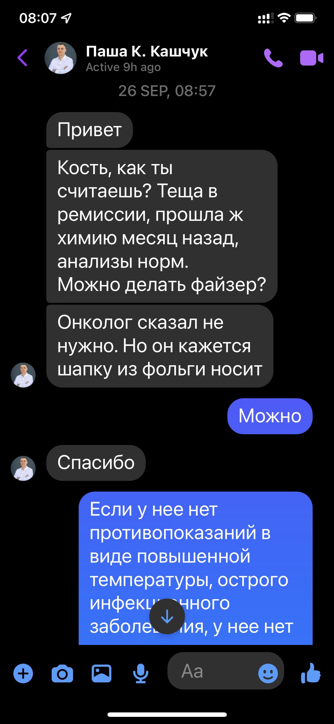 Поехала в онкоцентр на очередное обследование, по профилю все ок, но вакцину - низзя. Эпопея длилась чуть ли не с весны, в итоге повезли ее в платную клинику, там сказали - вы что чудите, делайте срочно! В итоге первую дозу сделали, вроде китайской как самой безобидной, но лично я от наших врачей в шоке