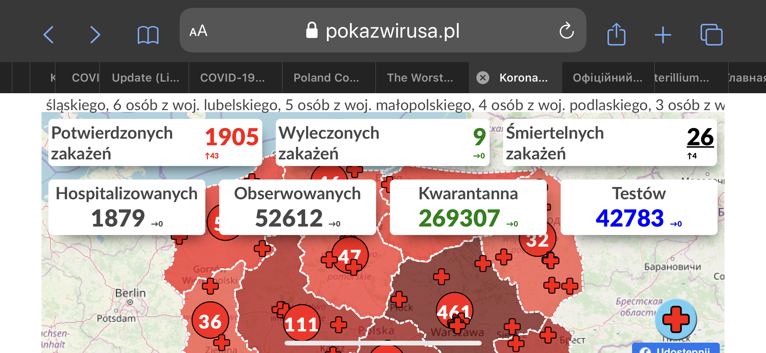 Хотя, многое сделано правильно и эффективно, например с ОТ, который не останавливали ни на час, обработка остановок ОТ ночью, меры в большинстве магазинов, обязательный карантин для всех, кто возвращается с контролем 24/7 и дикими штрафами за нарушение и пр. Жена читала кого-то из наших, кто вернулся и был помещен под такой карантин на 14 дней. Человек сидит дома, отвечая на звонки полиции и рапортуя свою температуру каждые несколько часов. Несколько раз копы приезжают с проверками. Не знаю, насколько это эффективно, но уже слышал о штрафах, которые влепили непоседам.Так вот, в один из звонков копов он спросил, как быть с продуктами, выходить-то нельзя даже в магазин. Привезли через несколько часов все ОСПшники (спасатели-пожарные местные) - запас на 2 недели. 200 Евро? Ага, сейчас. Не взяли денег, хотя человек и пытался им отдать, как-бы не бедный и нуждающийся.И таких вот, кто на спец-карантине - тысячи (смотрите на табличку ниже).