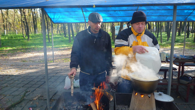 Завтрак готовили коллективно. А Саня еще и предусмотрительно варил шурпу на воскресное утро