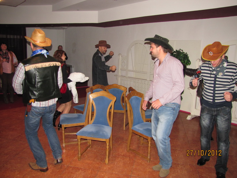 Проводили мы еще конкурс на необычное объяснение в любви между парами. Наши ковбои были оригинальны. Одни вызвал всех девушек на сцену и объявил своей даме сердца, что всех их он поменял на нее. А второй, просто застрелил всех конкуренток и объяснился в любви своей возлюбленной