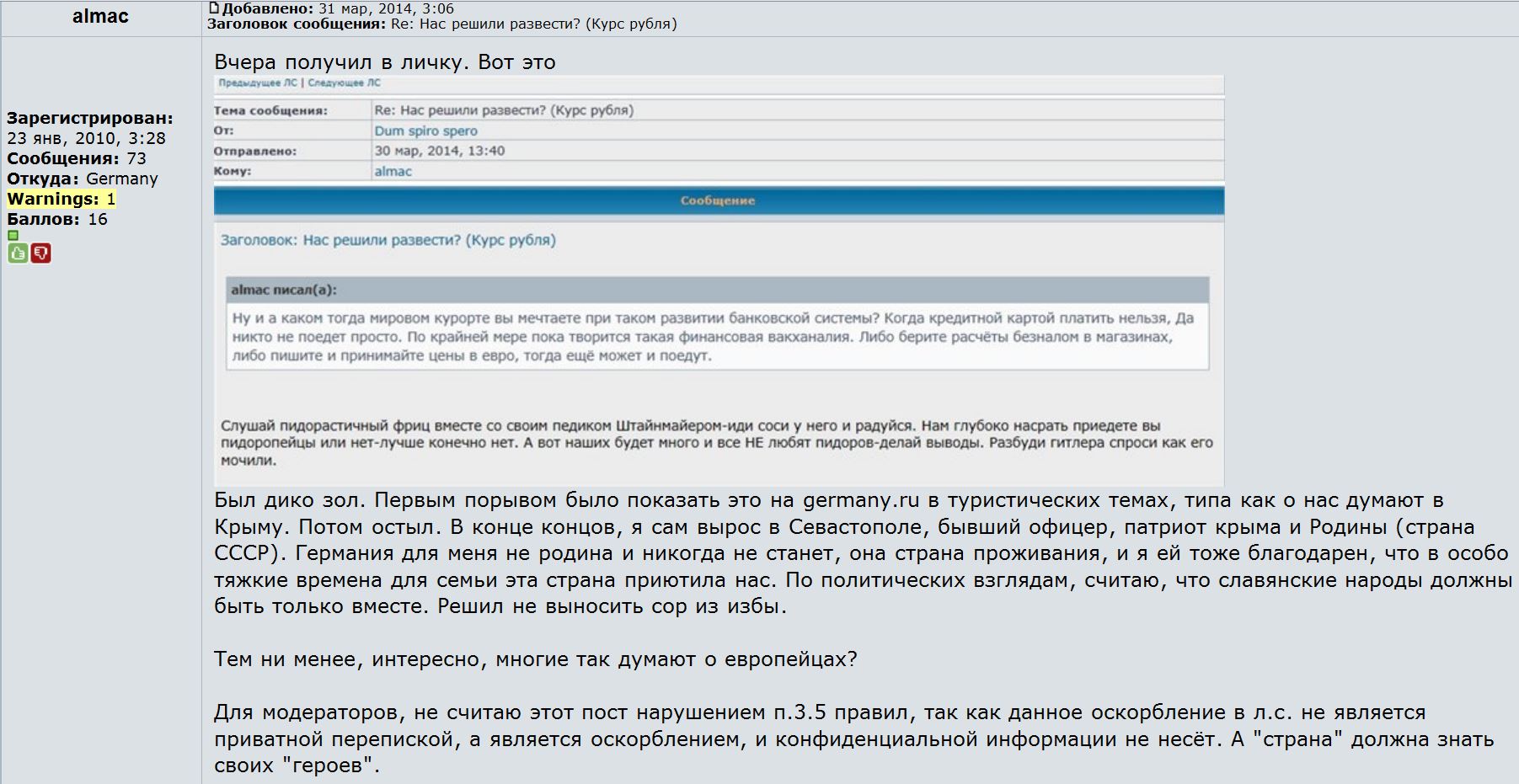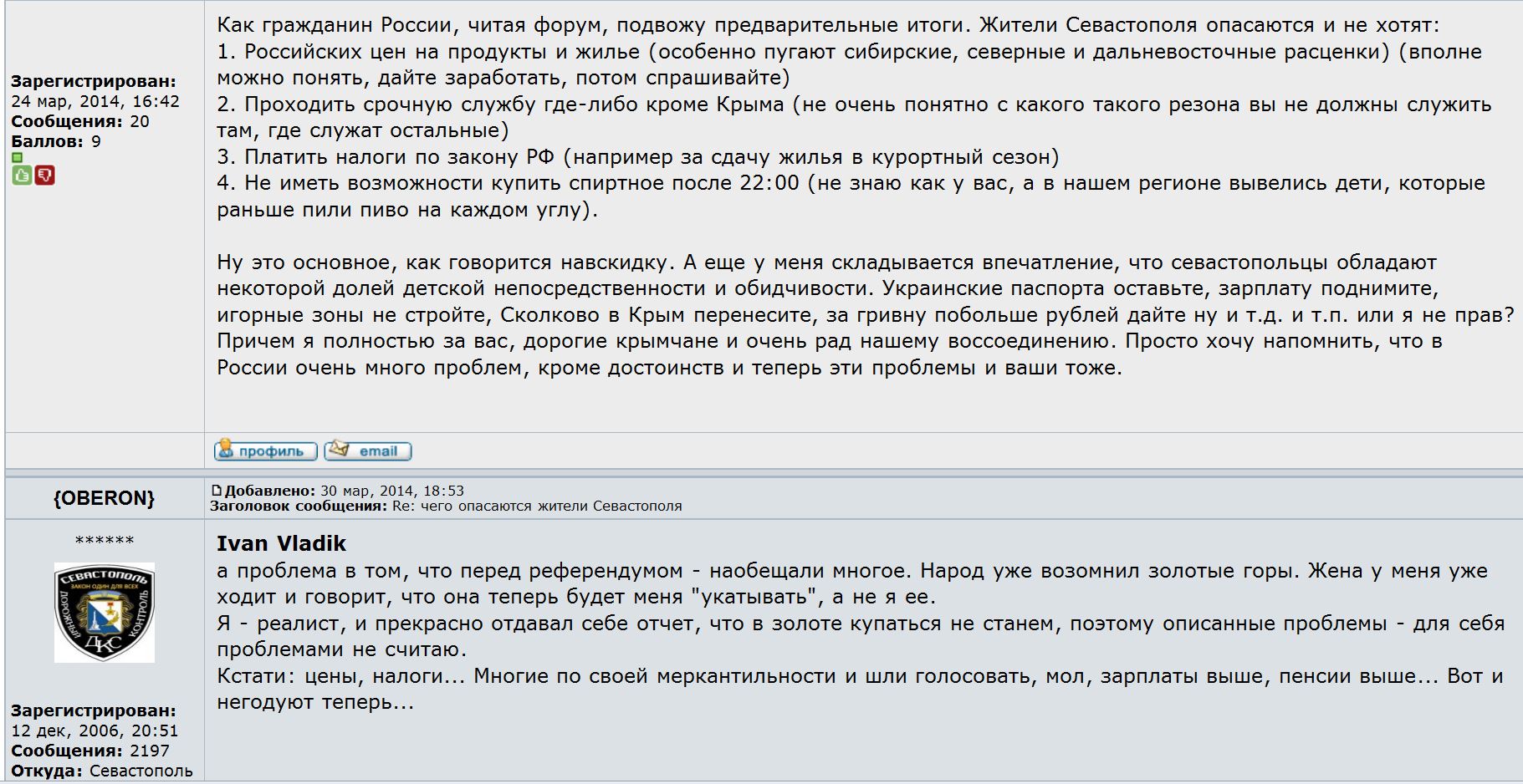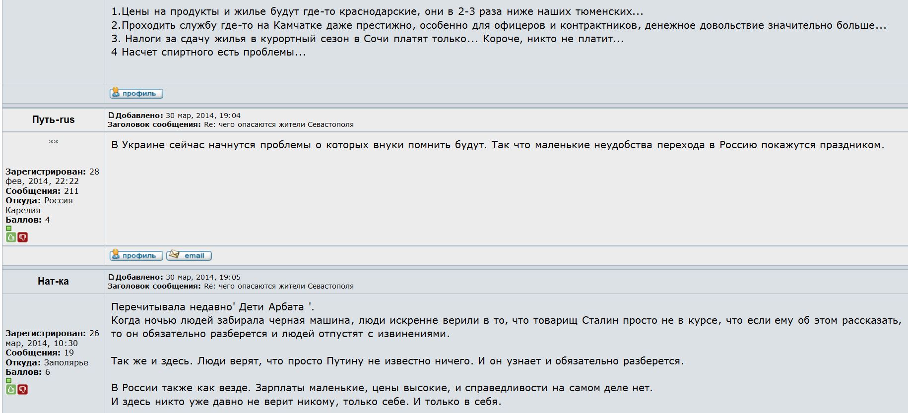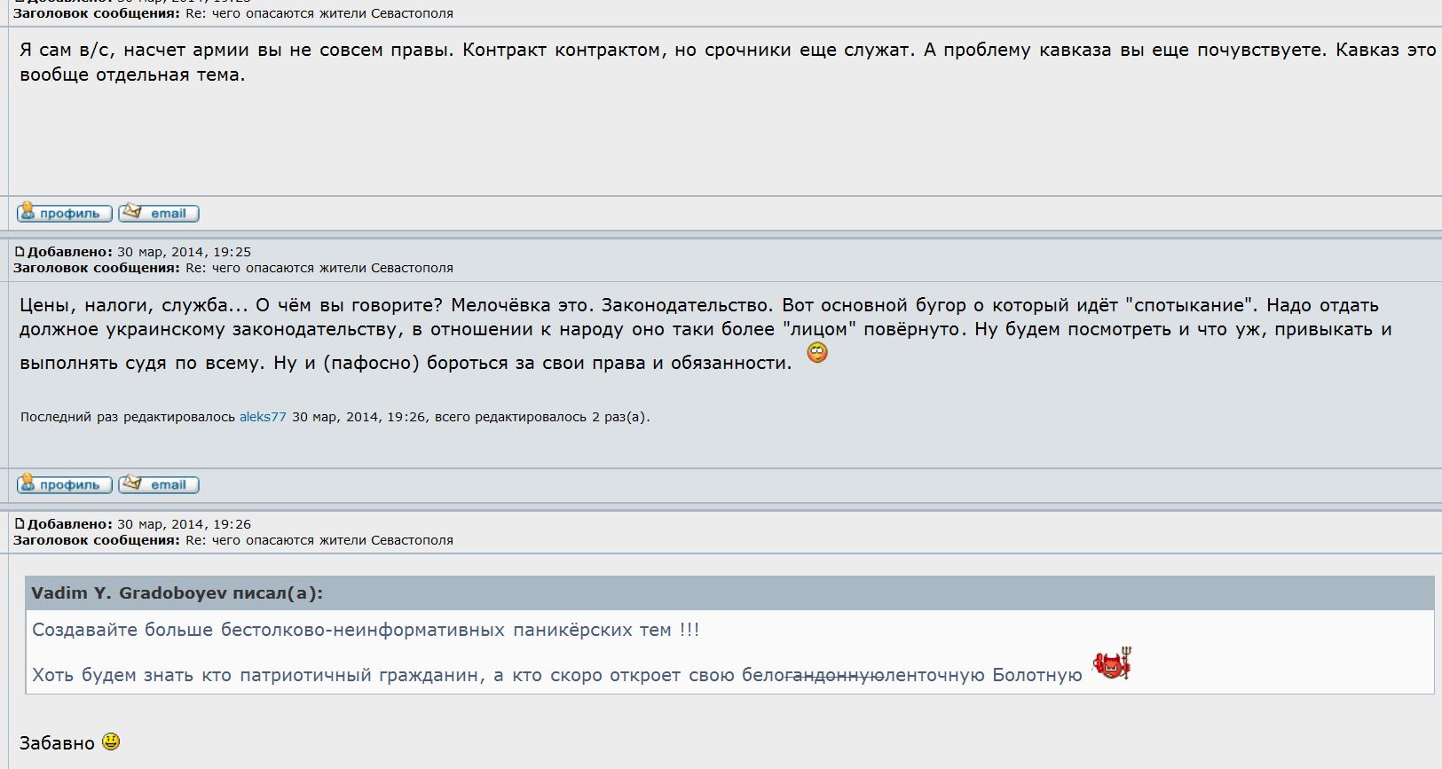 Сэнсэй писал(а):На новом форуме Укрправды есть хорошая ветка, куда выкладывают особые перлы с крымских форумов: http://ukrpravda.net/index.php?topic=233.0