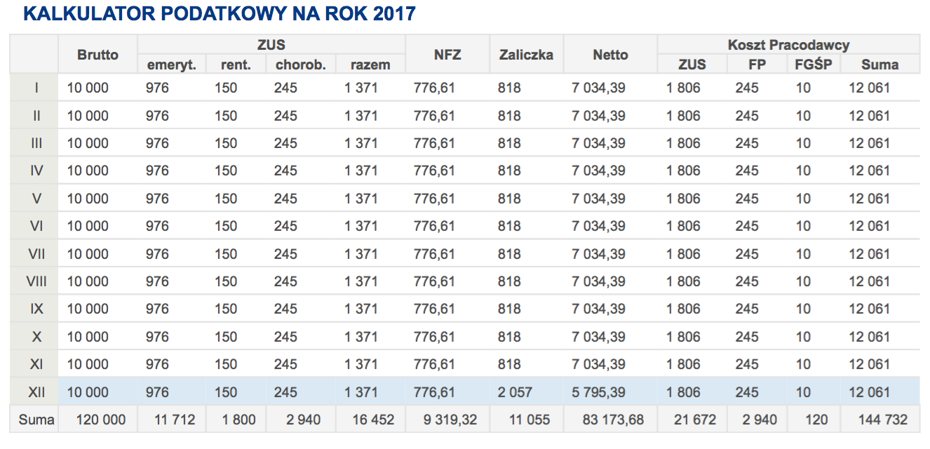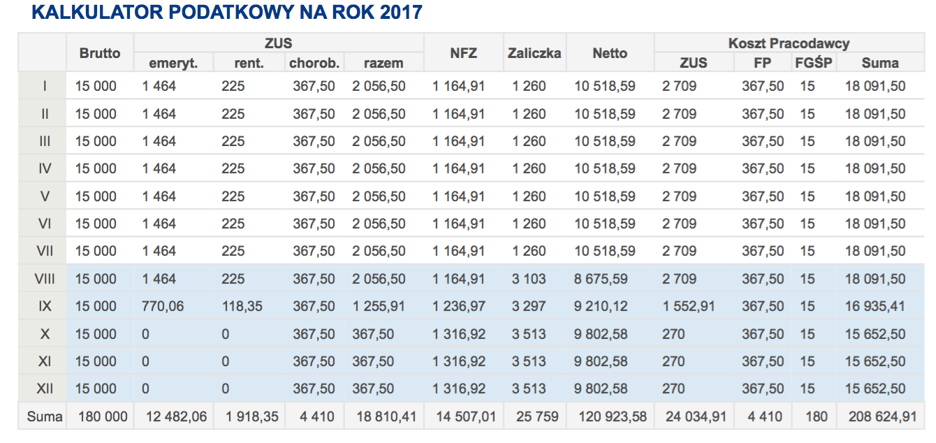 Розмір цього внеску домить суттєвий, не буду детально розписувати, бо в мережі достатньо калькуряторів та повних пояснень, з яких фондів він складається. Наведу лише приклад, аби розуміли сутніть прогресивного податку в Польші та розміру податку, який йде виключно на пенсії та медичне обслуговування. Навіть 2 приклади - для ЗП 10000 злотих та 15000 злотих (хоча, звичайно, це досить високі ЗП для країни).