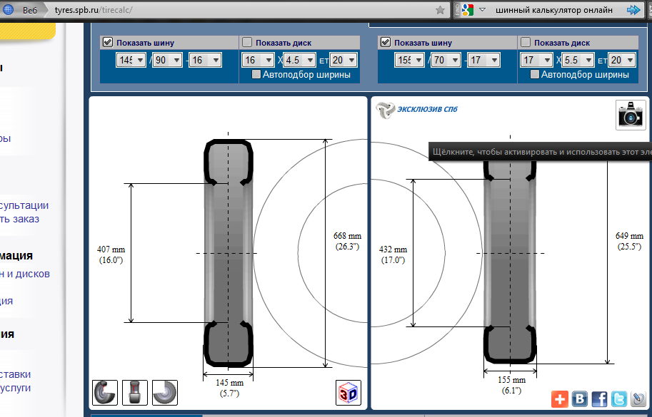 А вот разница между запасками опять таки по шинному калькулятору - 19 мм по диаметру, предлагаемая меньше, чем стандартная.