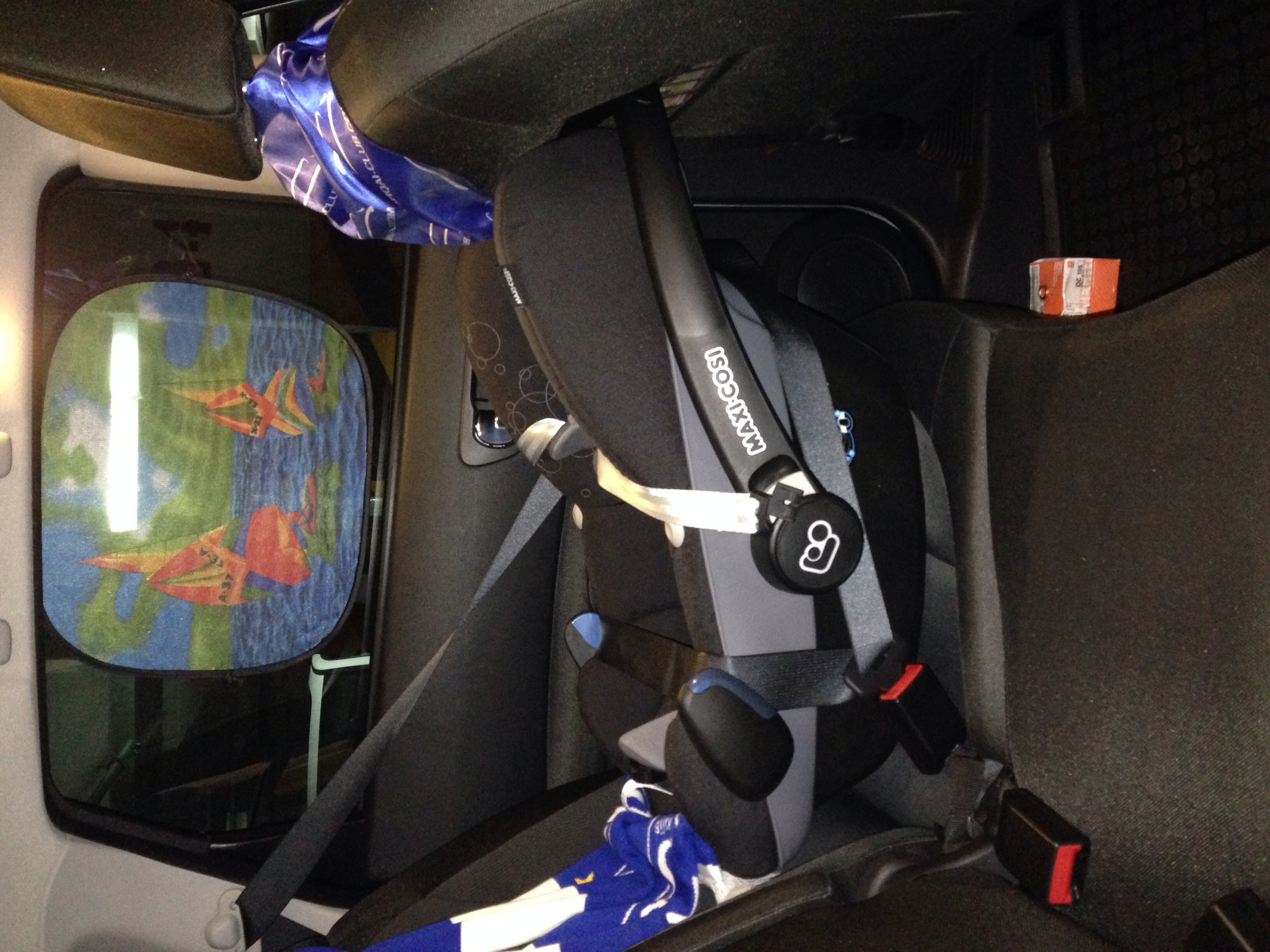 У меня сейчас Maxi-Cosi Pebble. Одно из самых больших и вместительных в своем классе. Базы пока не приехали, потому катаем пока на ремнях. Длины ремней хватает с головой. ;)