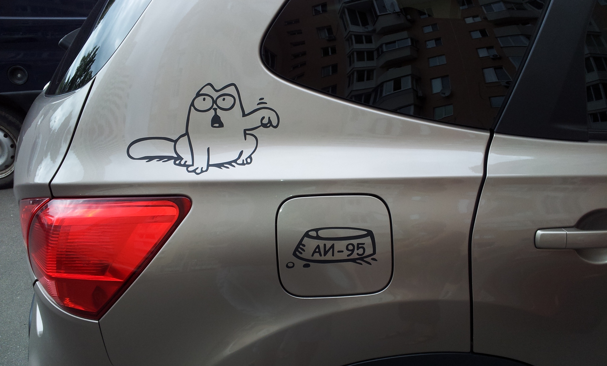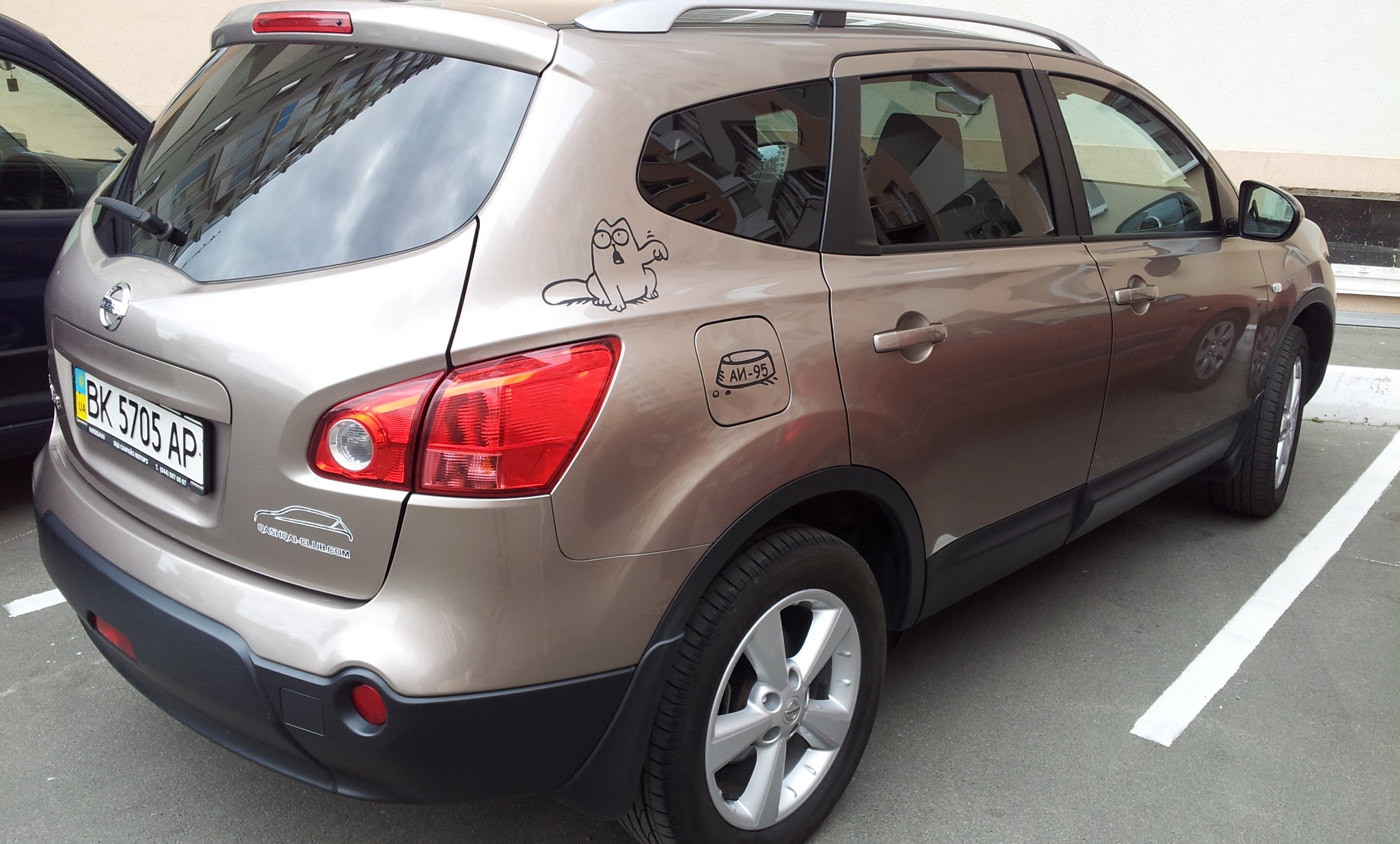 Сегодня в борисполе возле терминала B вижу белый кашкайчик с котом. Потом сзади клубная наклейка.