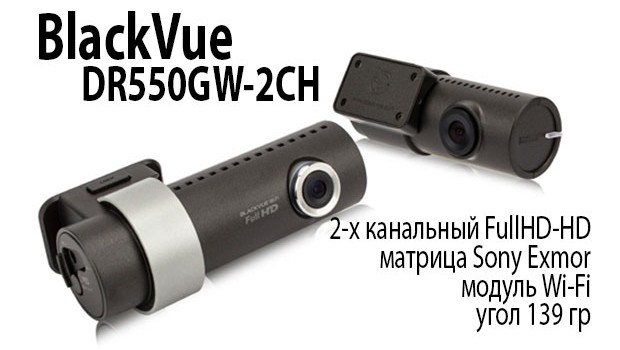 BlackVue DR550GW-2CH. Девайс обладает двумя камерами, снимающими в разрешении FullHD для передней и HD для задней при частоте 30 кадров в секунду, в которых будет использоваться матрица Sony Exmor, обеспечивающая хорошую ночную картинку за счет низкого уровня шумов и использования технологий широкого динамического диапазона.