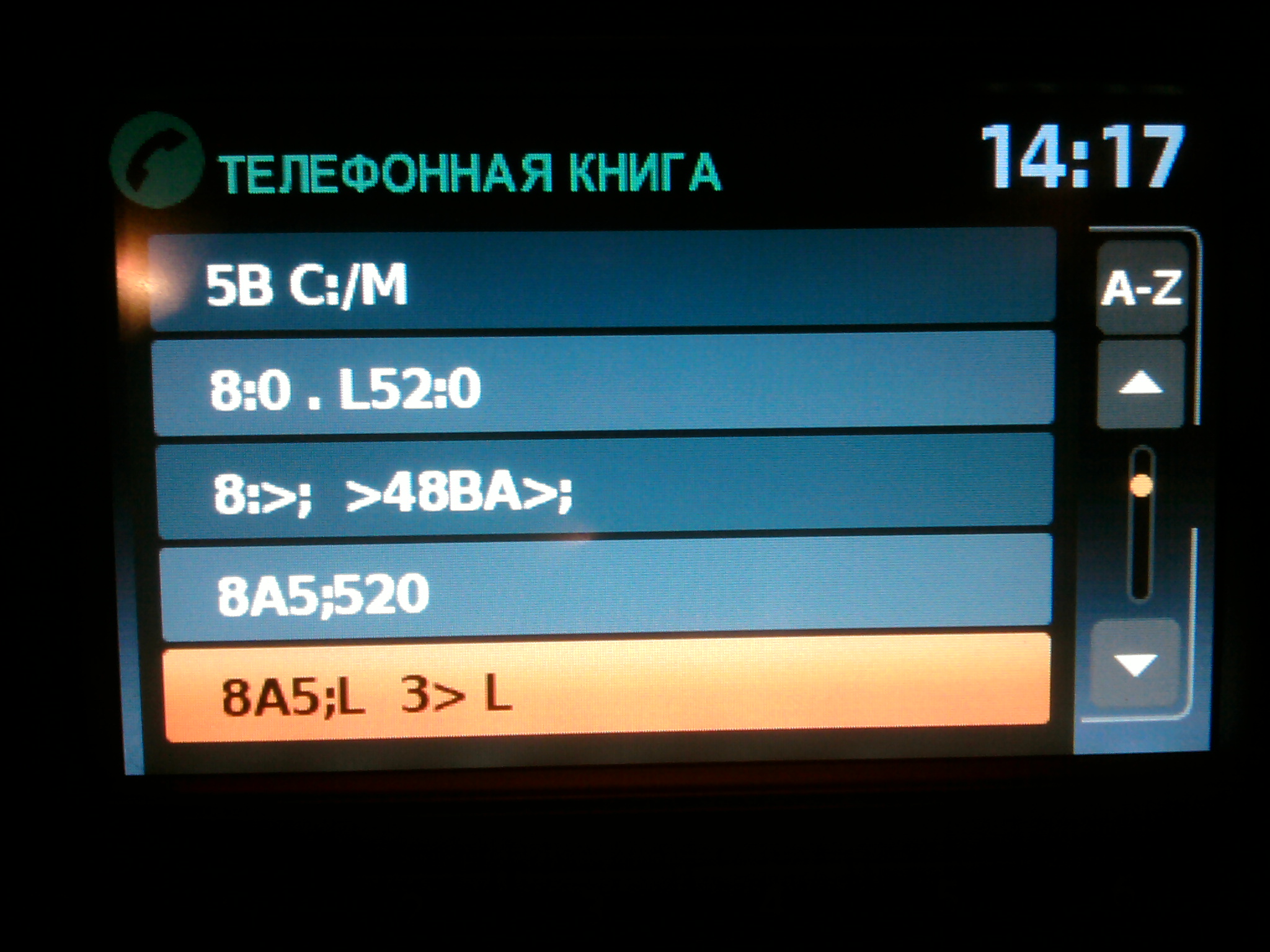 levsha писал(а):И я уже в который раз "намекну" что раз с одним телефоном всё нормально, то вряд ли виноват Nissan Connect (вспоминаем из-за чего вся перепалка началась). Но нюанс в том, что английские символы выглядят одинаково в utf8, koi8r, koi8ru, koi8u, cp1251, cp866 и еще в куче других кодировок. Именно поэтому я и говорю что добиться кривого отображения полностью латинских контактов очень непросто
