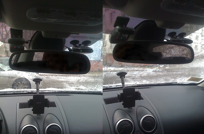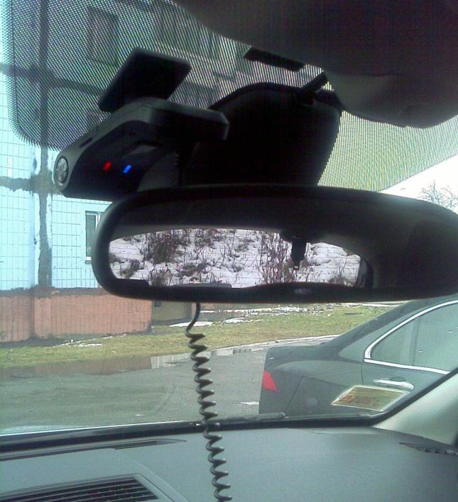 Я закрепил его на ветровом, возле пластикового кожуха крепления зеркала (точечная тонировка вокруг него делает девайс незаметным).