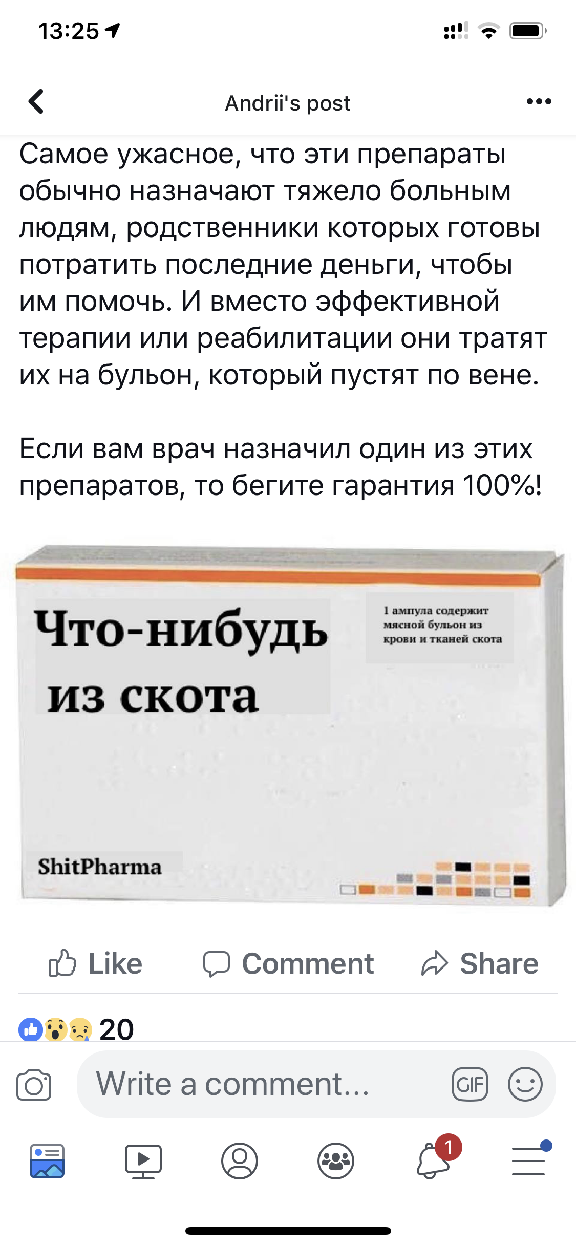 snapЯ посоветую у этого «доктора» попросить доказательства эффективности действия этого фуфломицина при том диагнозе, что твоей маме поставили. Хотя бы ссылки на пару статей с результатами клинических исследований.