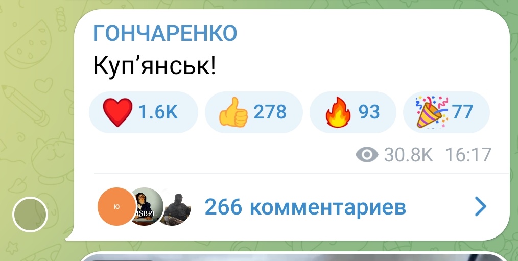 один з найбільш оперативних телегам-каналів про хід війни: https://t.me/insiderUKR/