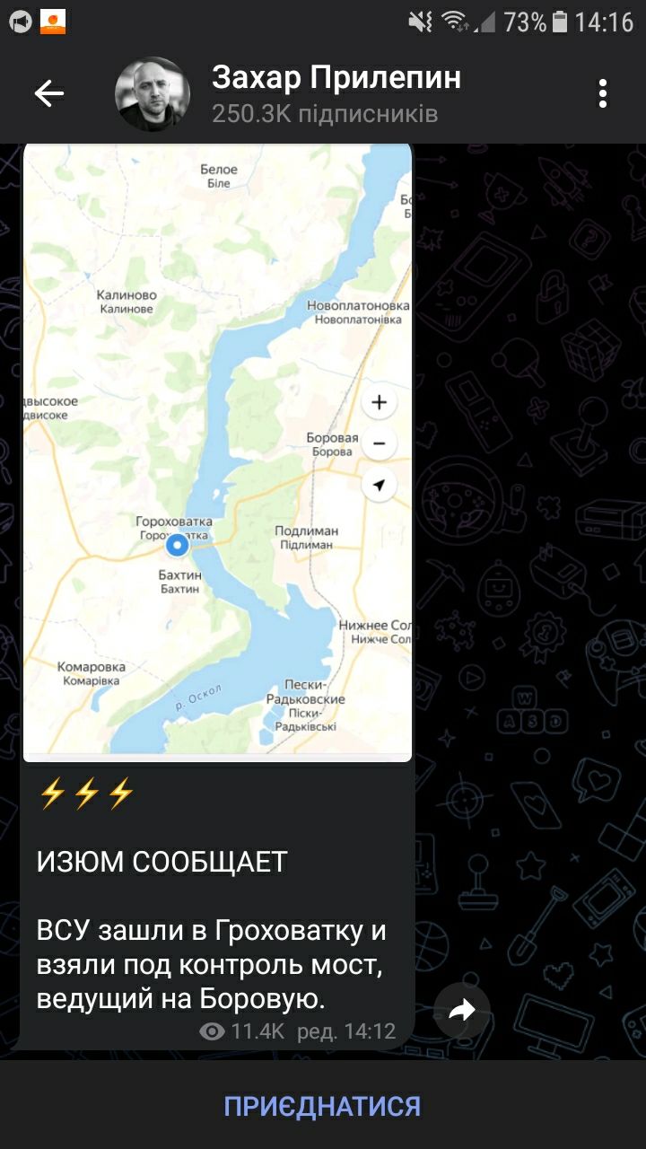 Бочкала пише про вихід наших до Оскільського водосховища. Тобто, після кількох влучань Хаймарсами по мостам в Гороховатці і Осколі, тисячі ізюмських орків опиняться в котлі. Дуже нагадує їх становище під Херсоном.
